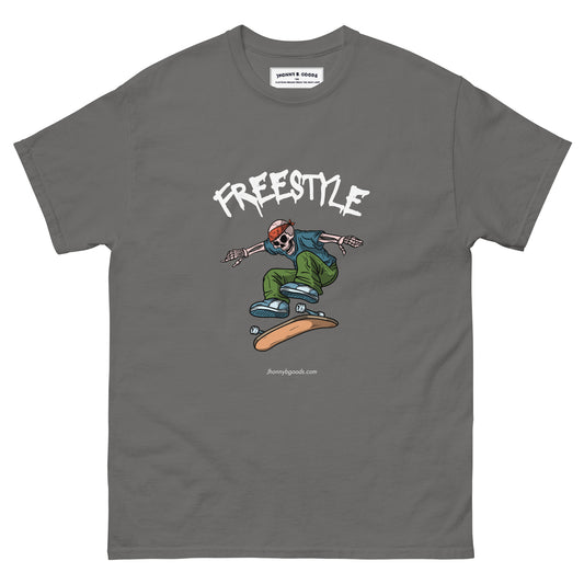 Freestyle Skateboarding Menโs Classic Tee | Skeleton Skate Streetwear T-Shirt