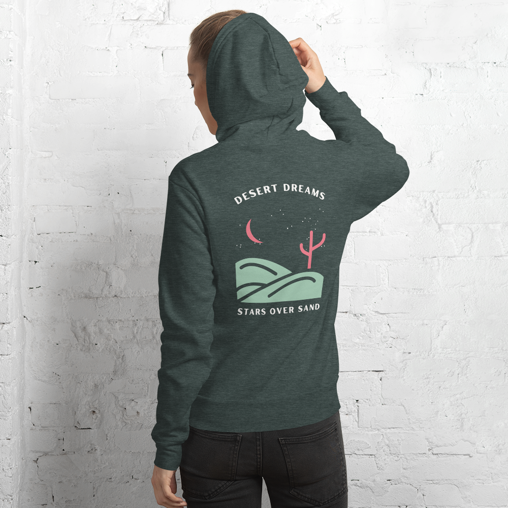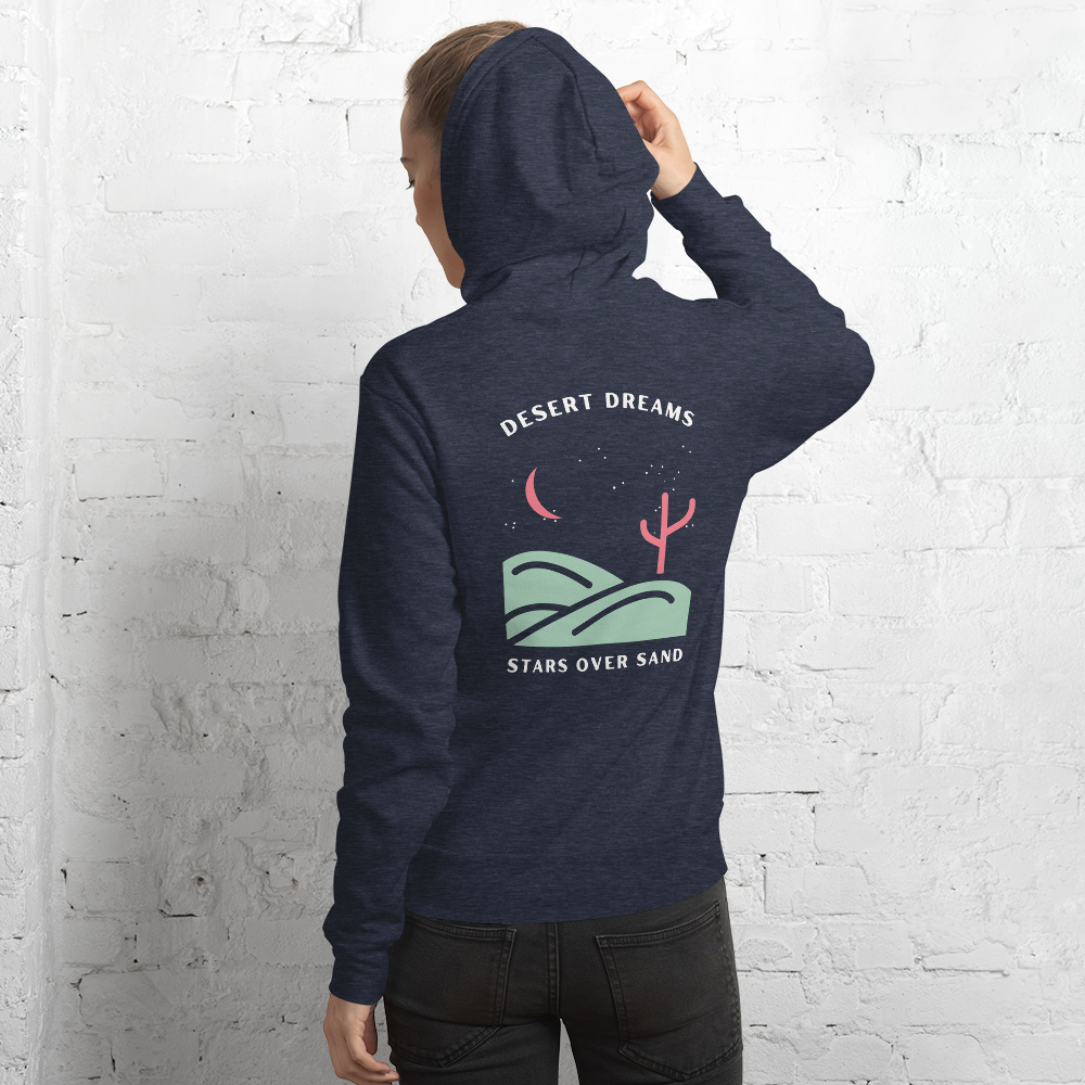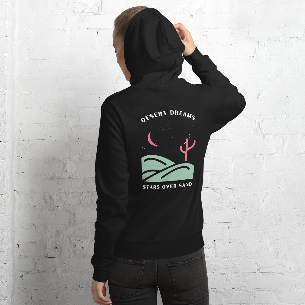 This Desert Dreams Women's hoodie - soft and comfy that fits all your hoodie needs. The fleece fabric makes it a great partner all year round, be it a summer evening on the beach in the desert , or a Christmas dinner in a mountain cabin.