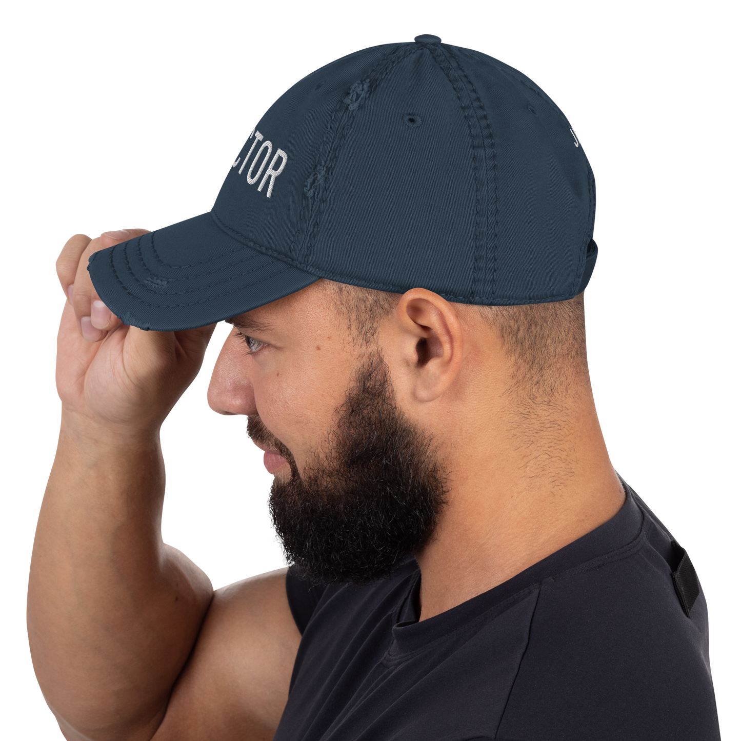 Expand your headwear collection with this fashionable dad hat. With a slightly distressed brim and crown fabric, it’ll add just the right amount of edge to your look. For a quick and easy outfit pair it with slacks, your favorite jeans, and a sports tee.