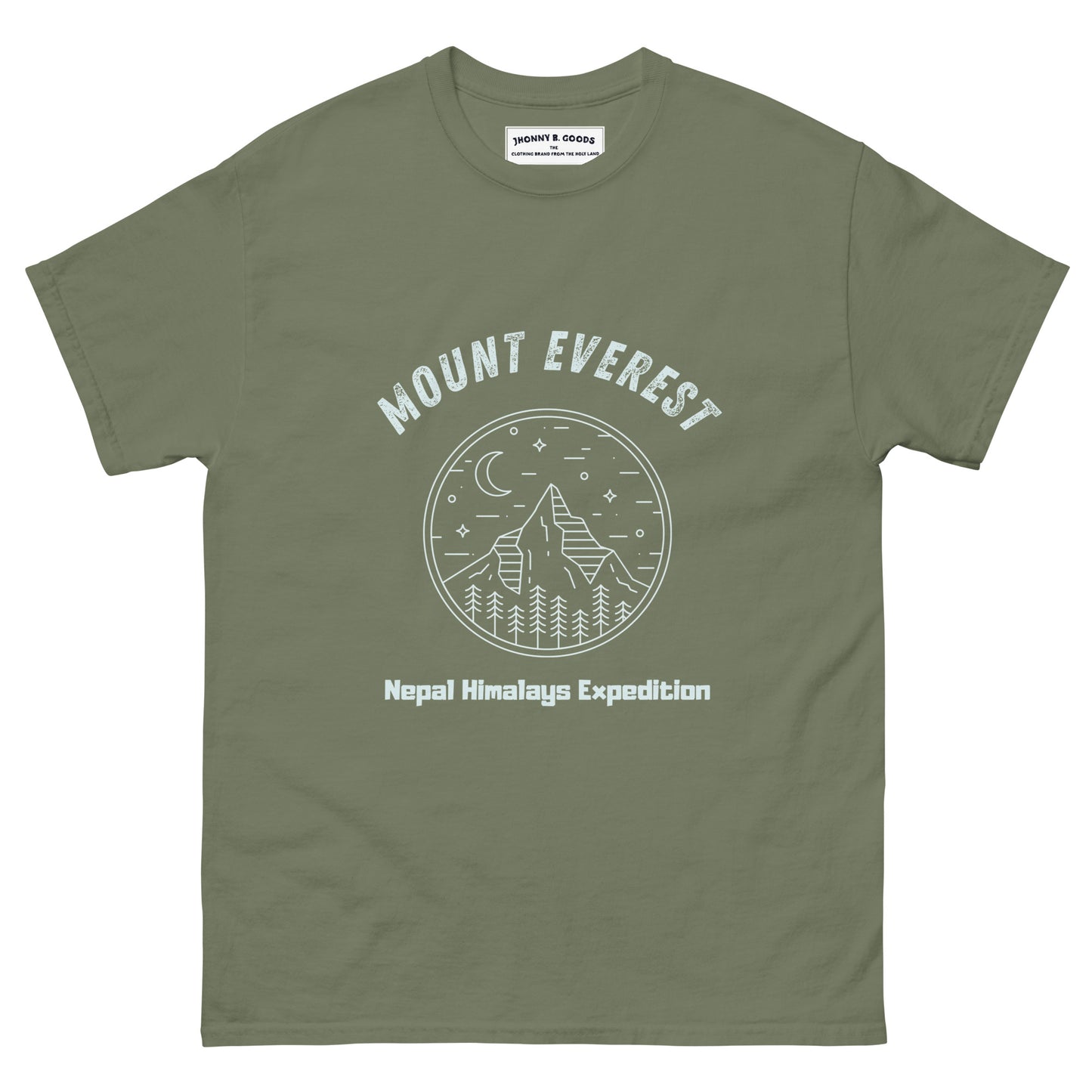 Discover new heights with our Everest Nepal Expedition adventure shirt. Made with 100% cotton, this men's classic tee offers a structured look that maintains sharp lines and pairs perfectly with layered streetwear outfits. Elevate your style and stay on trend with Everest.