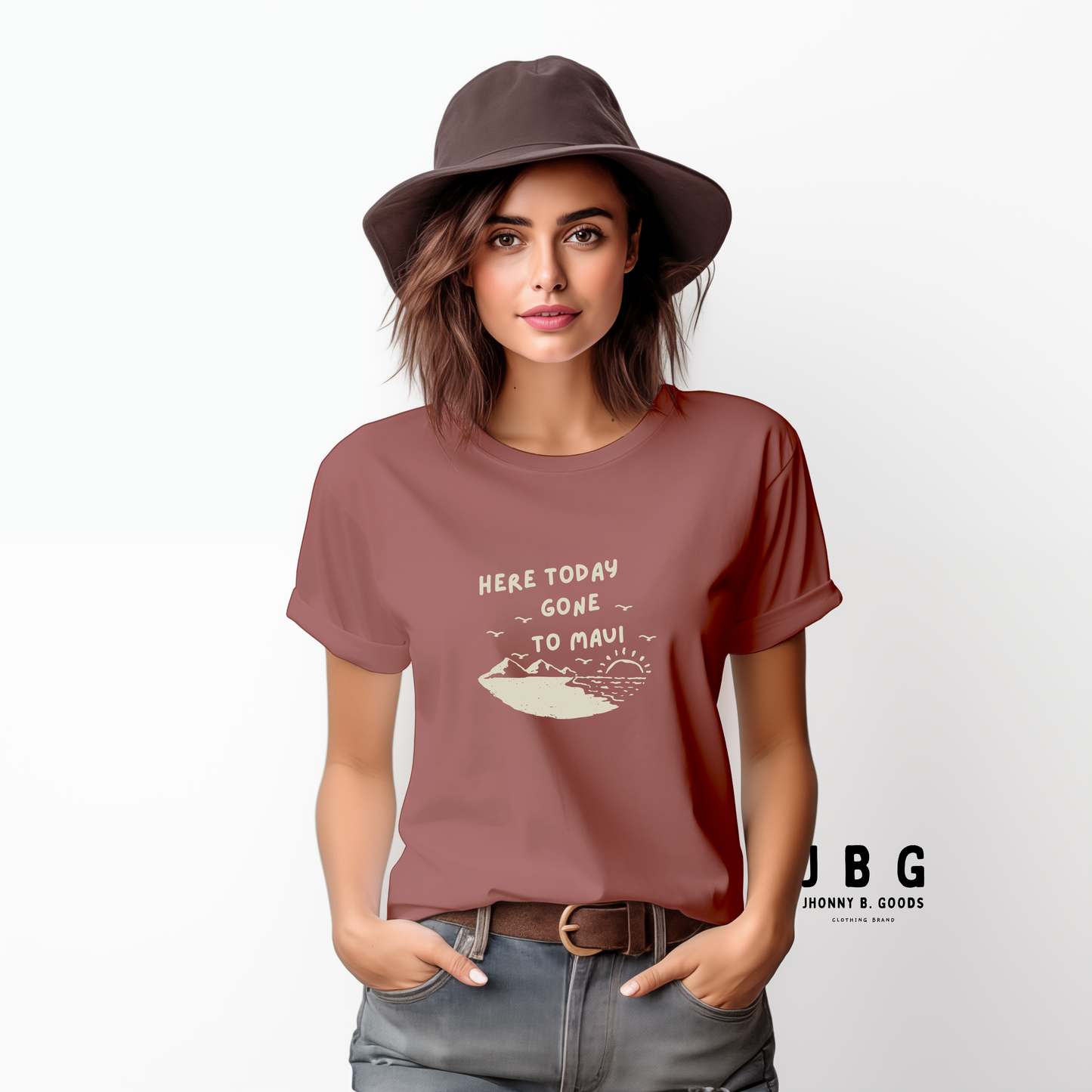 Escape to island vibes with our ‘Here Today, Gone to Maui’ women’s tee. Part of the Nature & Outdoor collection, this shirt captures the laid-back spirit of sun-soaked shores and tropical getaways. Soft, lightweight, and with just the right amount of stretch, it’s made for those who chase the sun. Your paradise awaits.