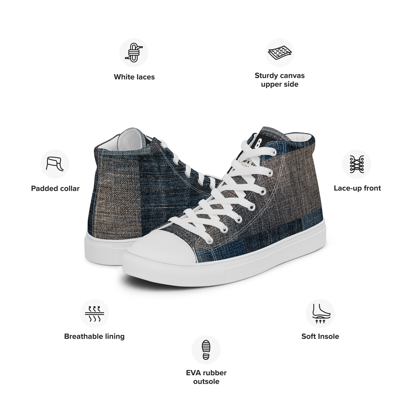 Step up your shoe game with the High Top Canvas Shoes. These handmade, trendy shoes are sure to spice up your outfit. Get yours now!