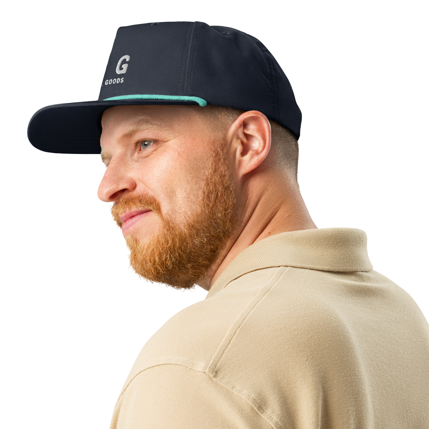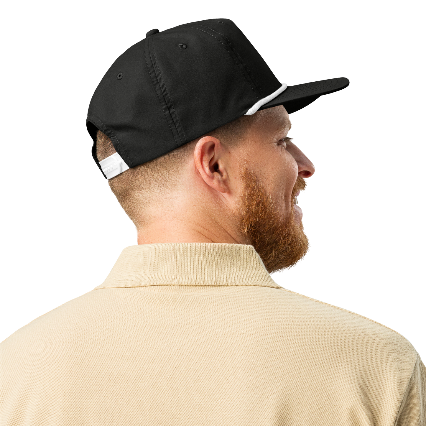 • Semi-curved bill with contrasting rope