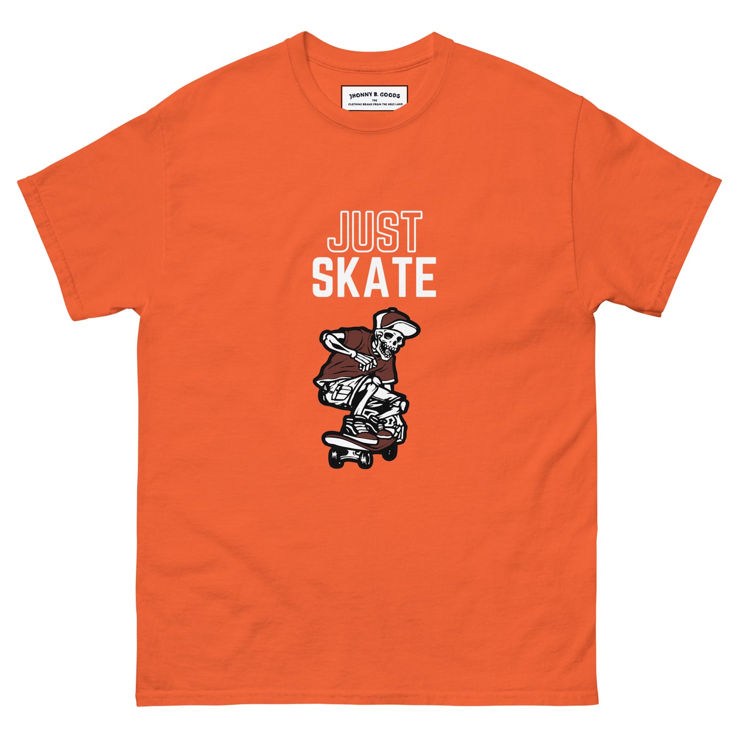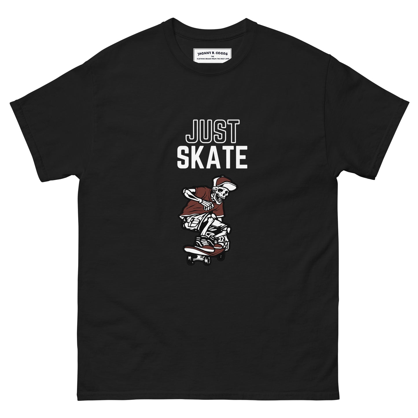 Take your skate style to the next level with our Just Skate Men's classic tee! Made from 100% cotton, this unisex tee features a bold, skater-inspired graphic. Perfect for a structured and trendy look, it pairs perfectly with layered streetwear outfits. Step up your fashion game and embrace the adventure!