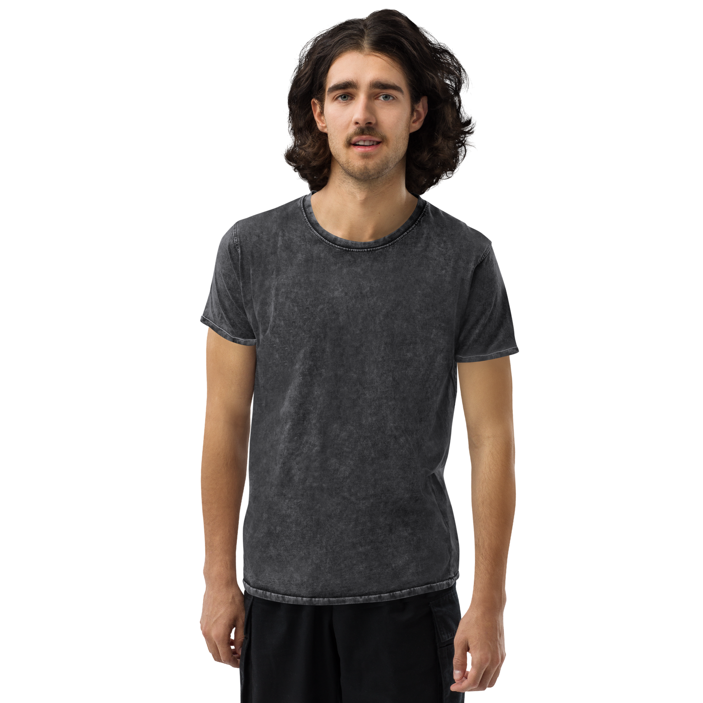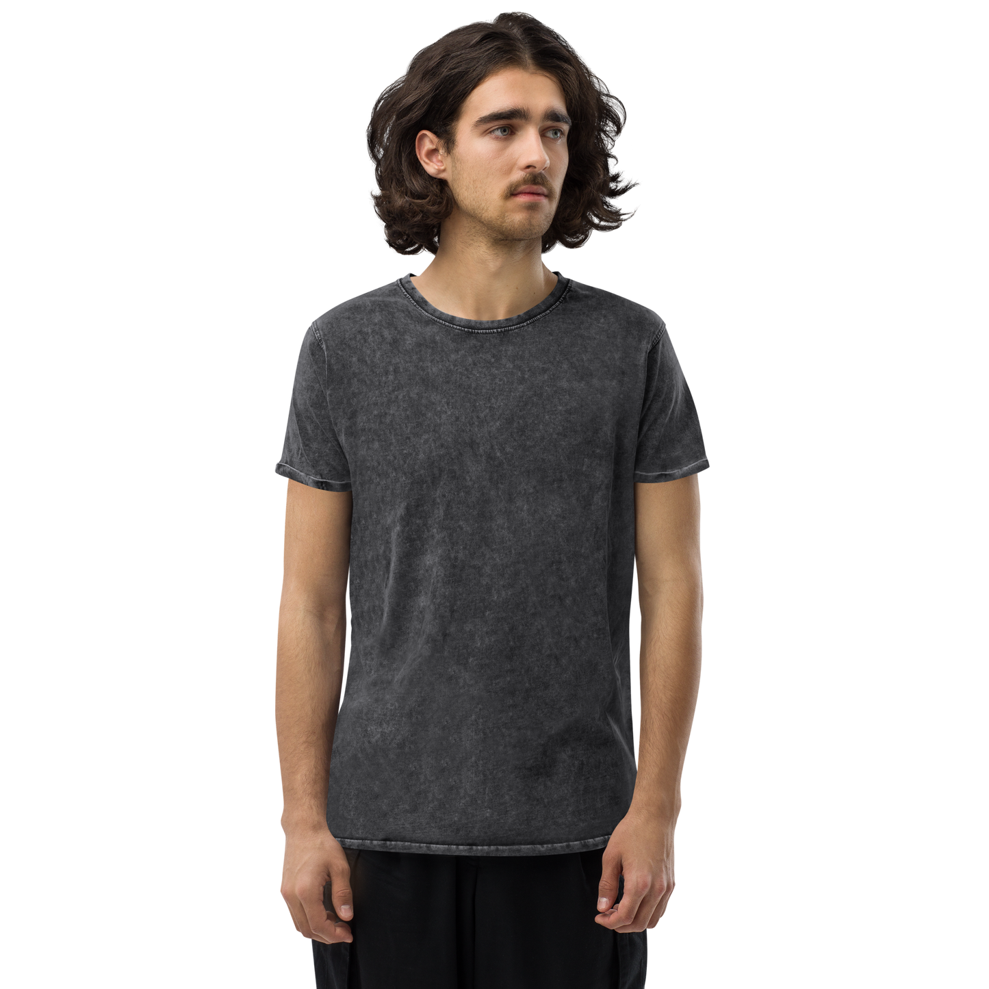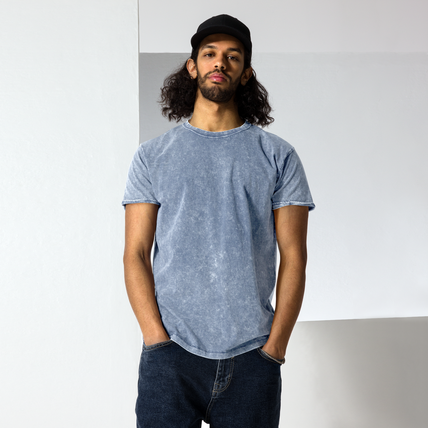 This denim t-shirt is made out of 100% combed cotton and has a classic rounded neckline with ribbed sleeve cuffs. It's soft, comfortable, and a must-have for every fashion enthusiast!