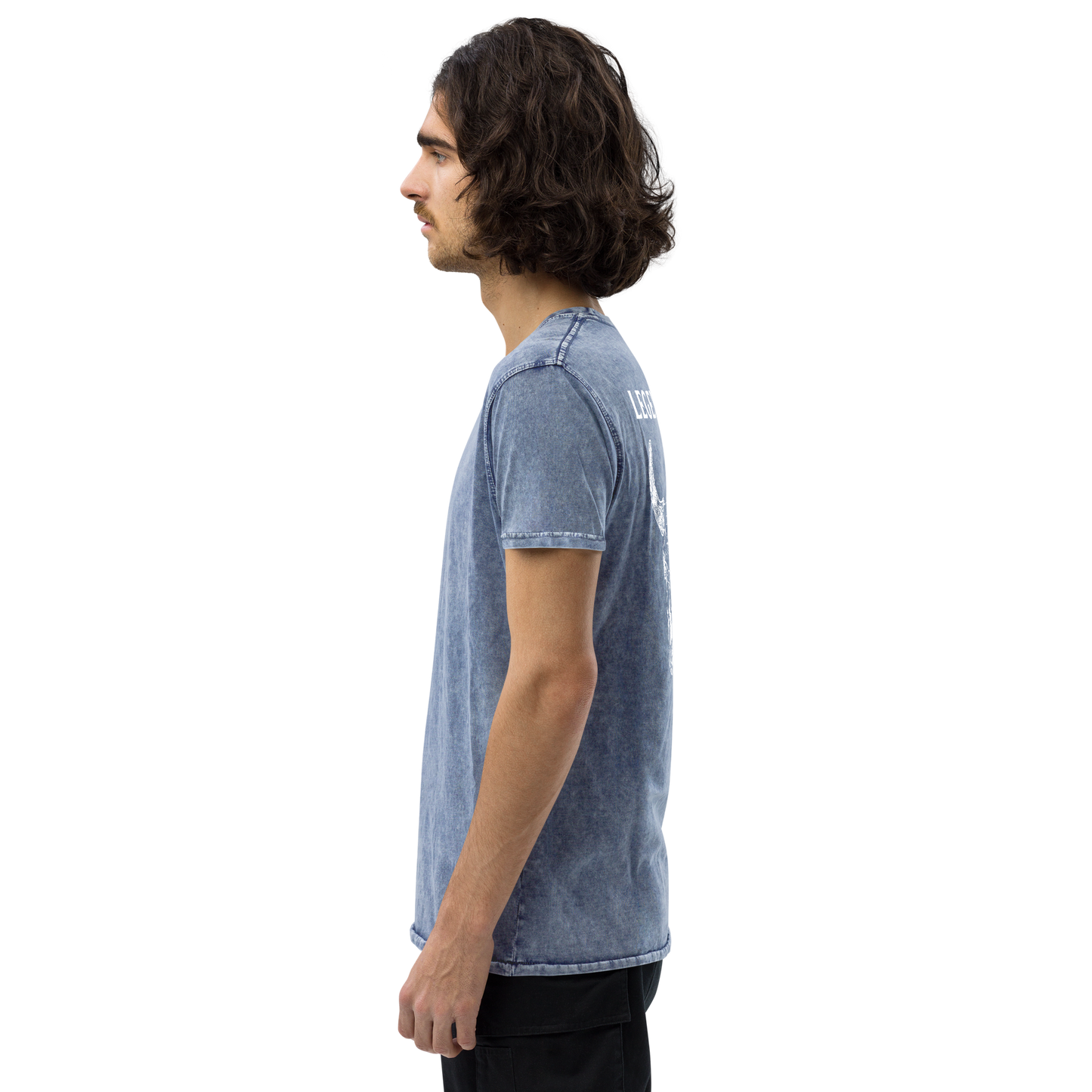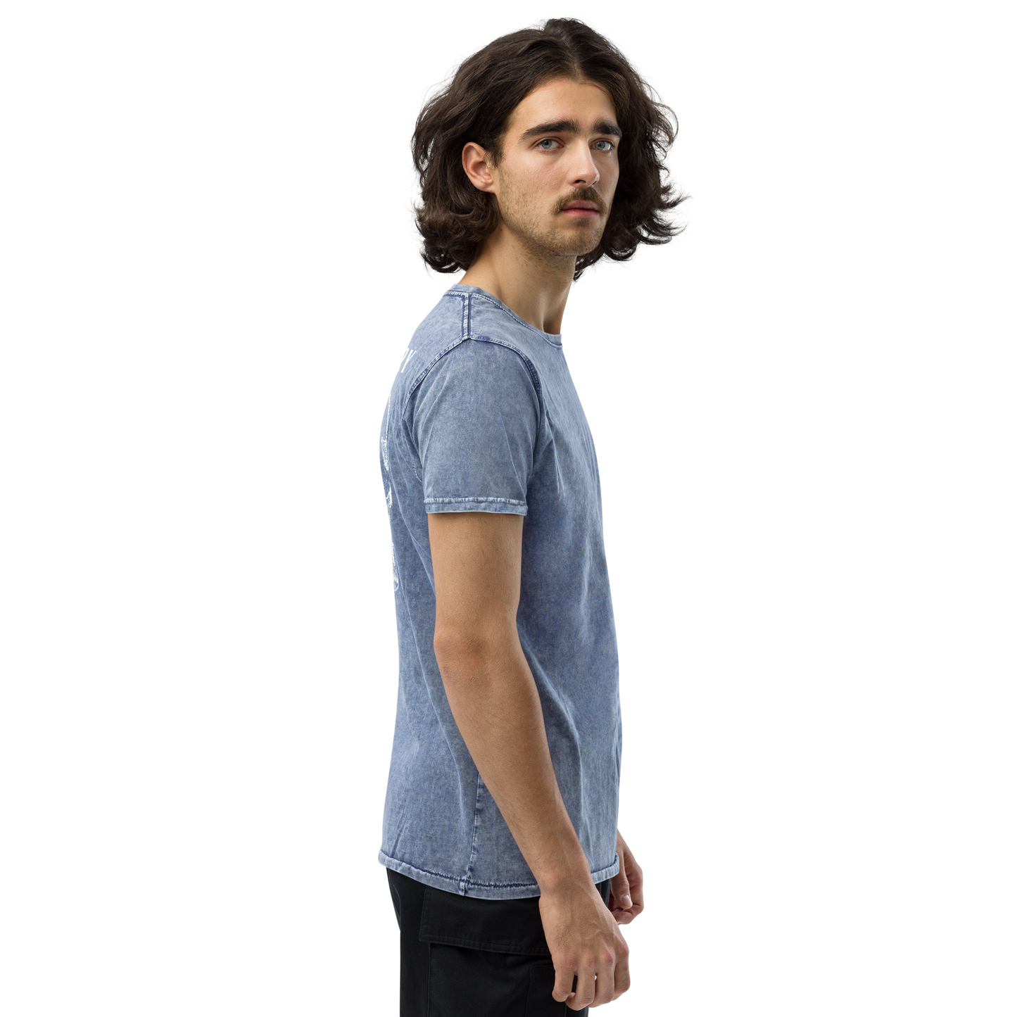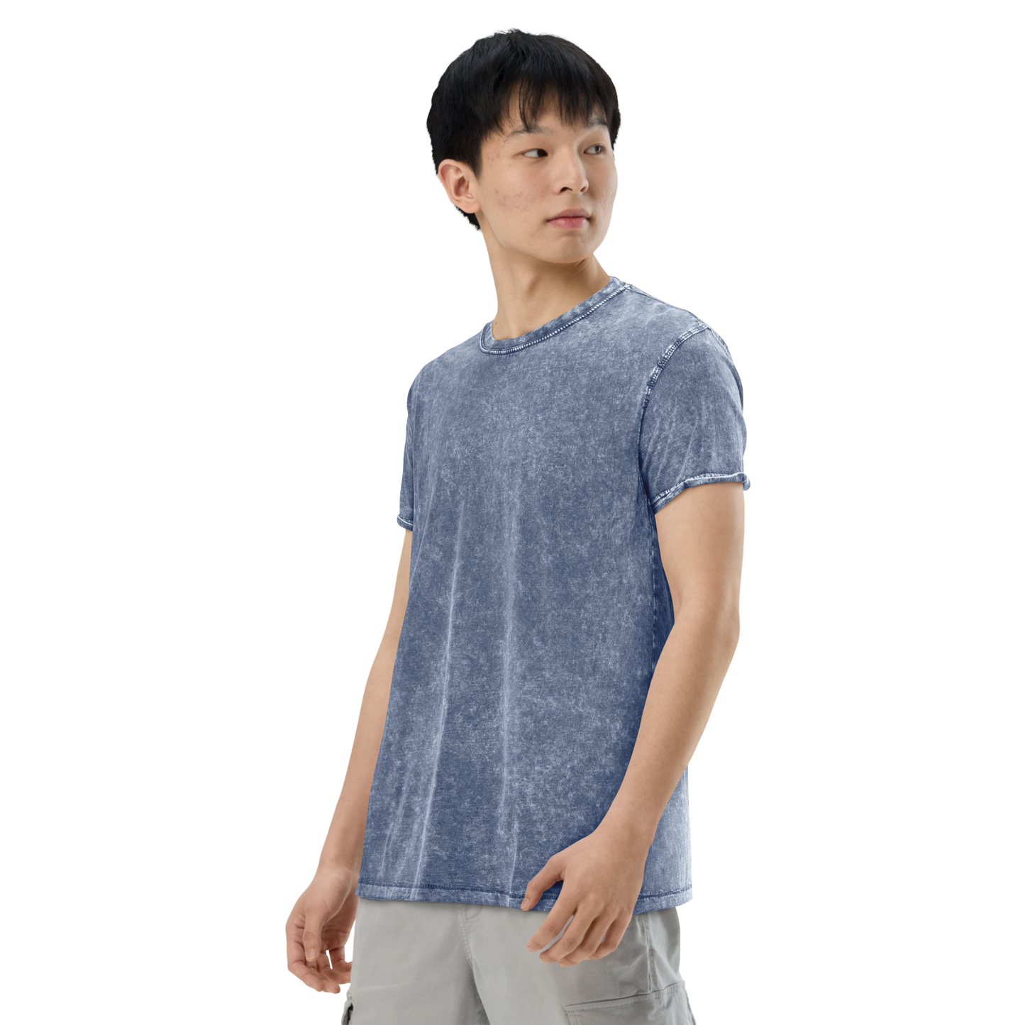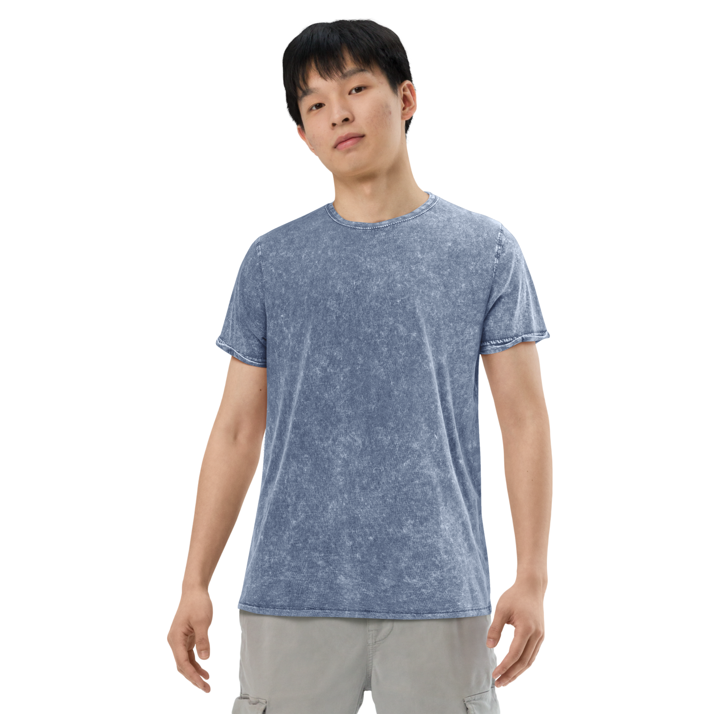 This denim t-shirt is made out of 100% combed cotton and has a classic rounded neckline with ribbed sleeve cuffs. It's soft, comfortable, and a must-have for every fashion enthusiast!
