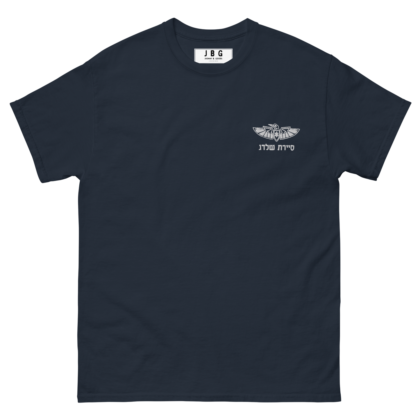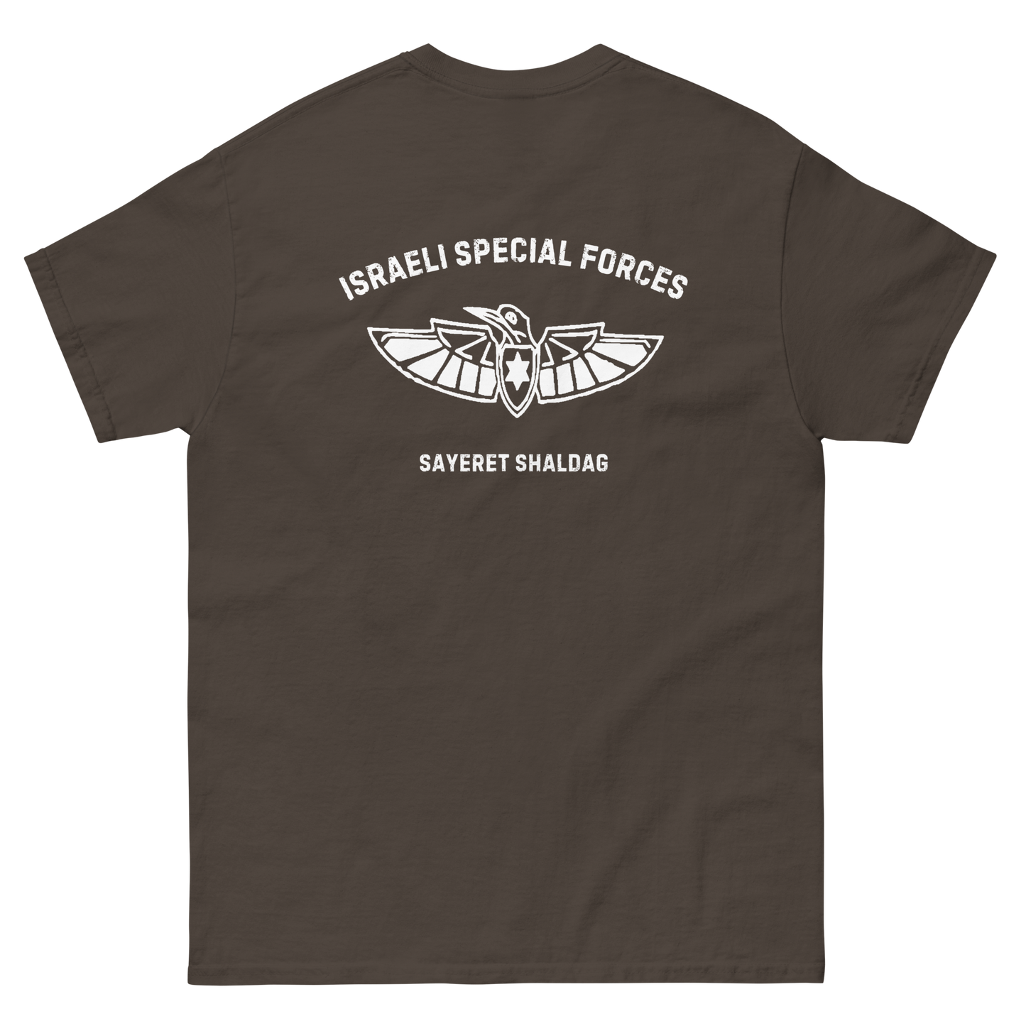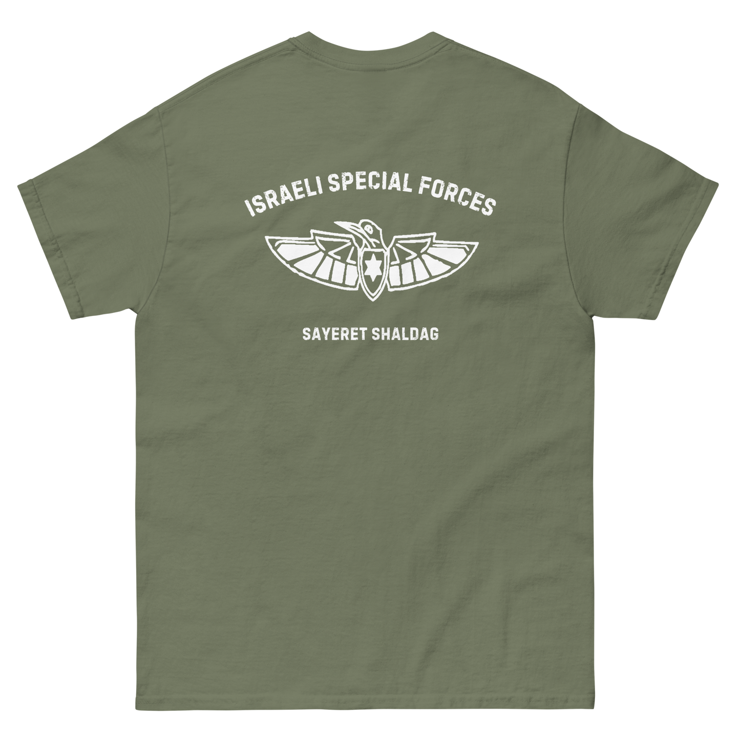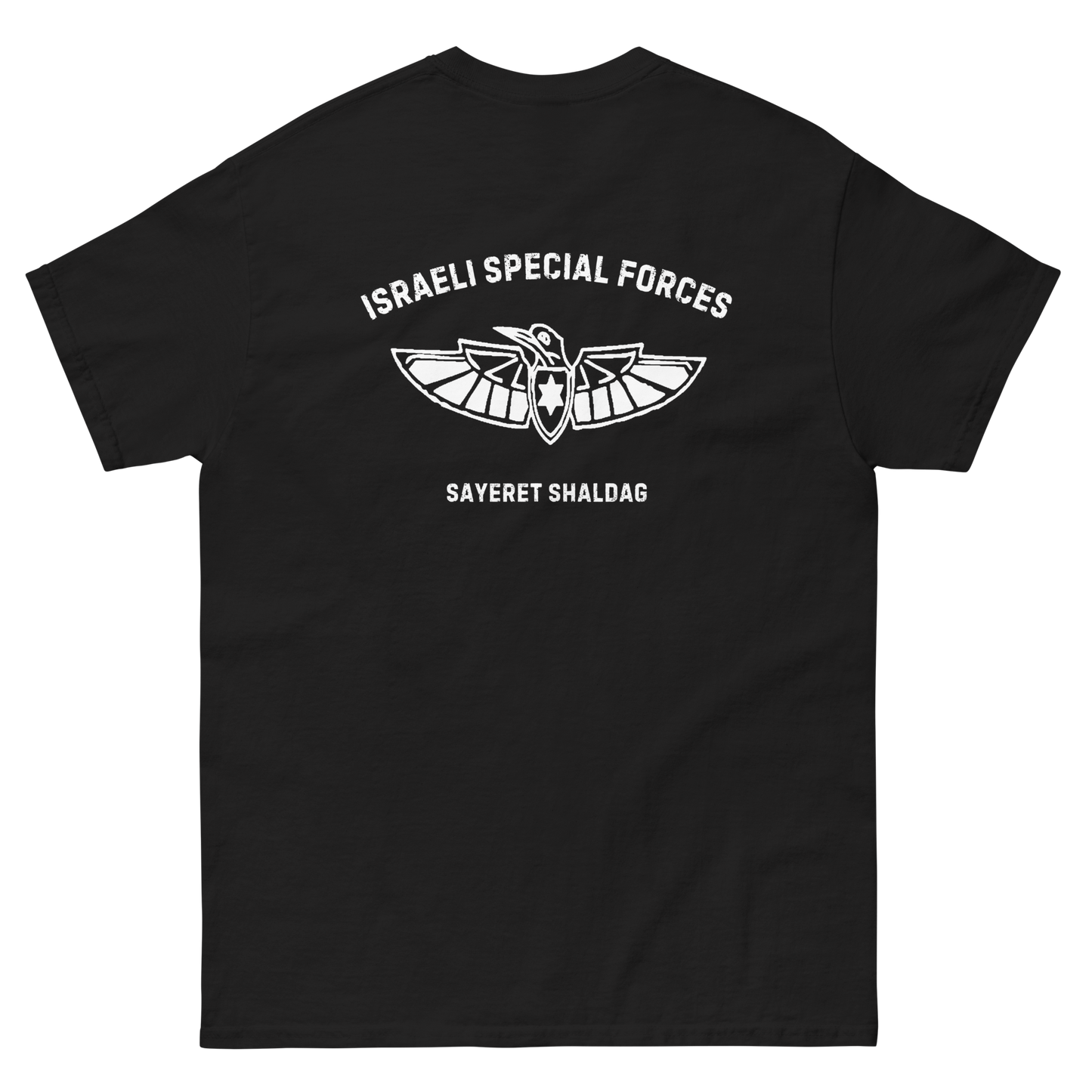 Pay tribute to Sayeret Shaldag, the elite IDF special forces unit, with this premium t-shirt that exudes authentic Israeli spirit. Featuring a bold graphic print of the unit’s logo on the back and a finely embroidered emblem on the front, this 100% cotton men’s classic tee provides a structured fit, making it perfect for streetwear or casual outfits.