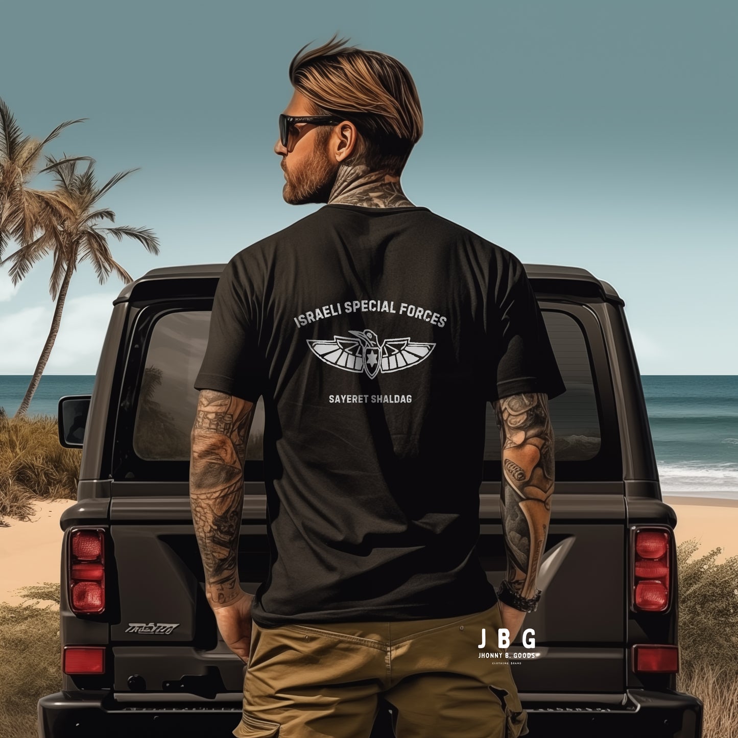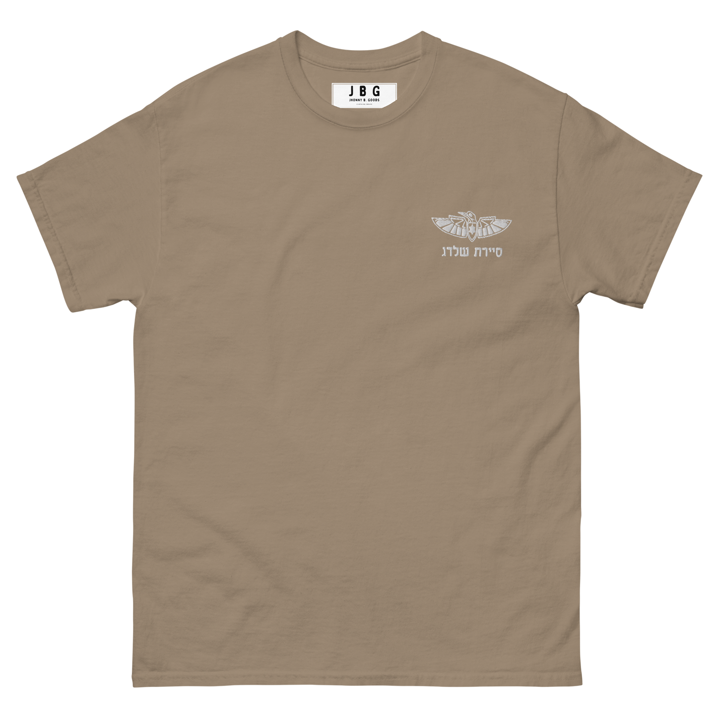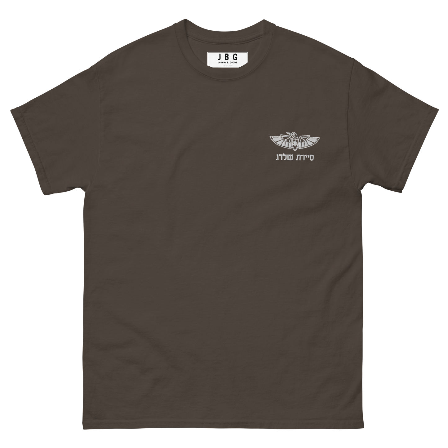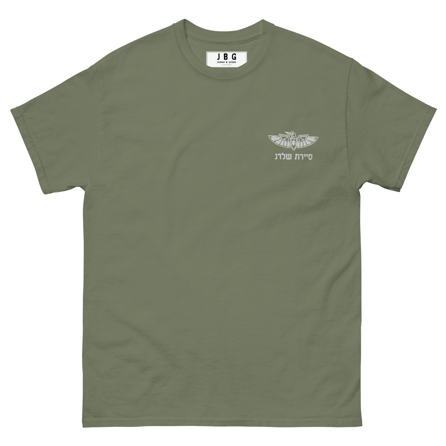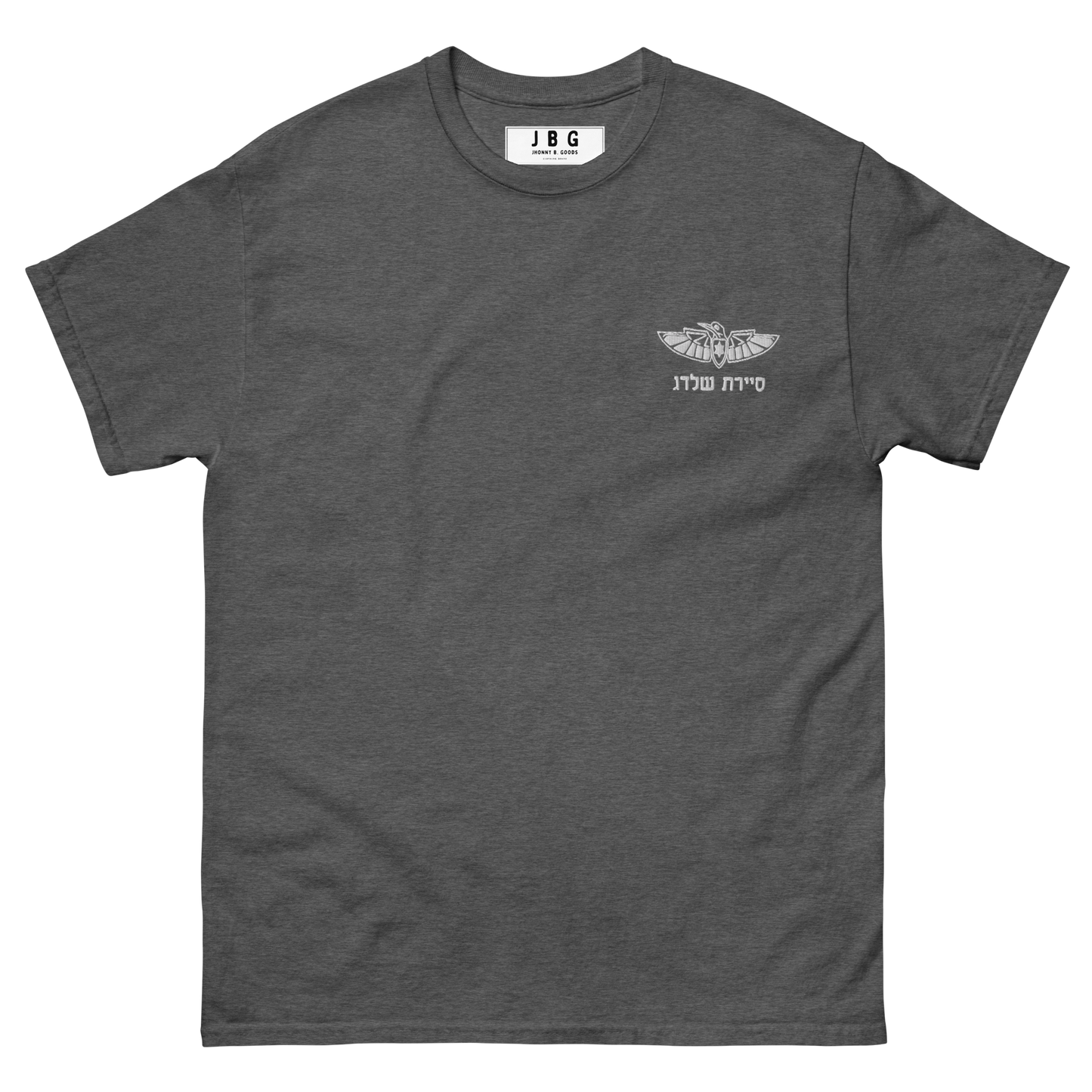 Pay tribute to Sayeret Shaldag, the elite IDF special forces unit, with this premium t-shirt that exudes authentic Israeli spirit. Featuring a bold graphic print of the unit’s logo on the back and a finely embroidered emblem on the front, this 100% cotton men’s classic tee provides a structured fit, making it perfect for streetwear or casual outfits.