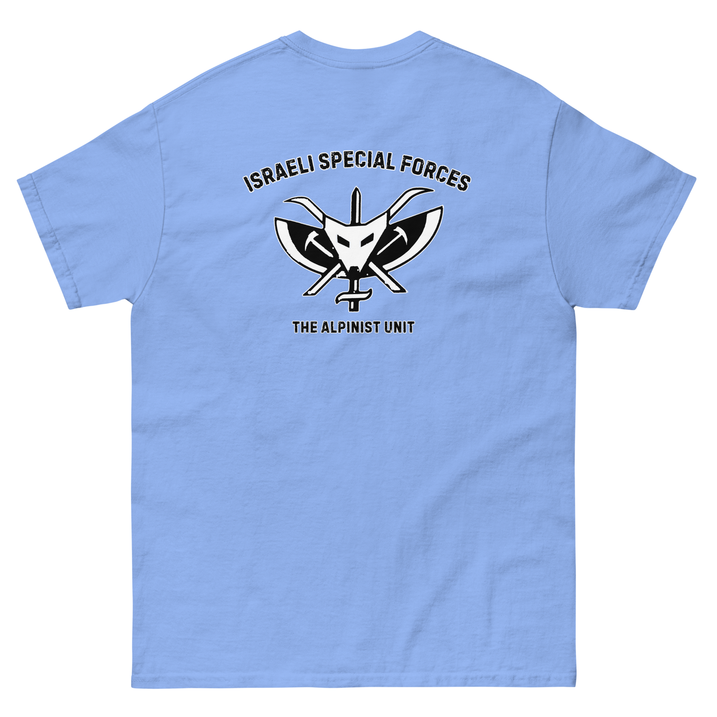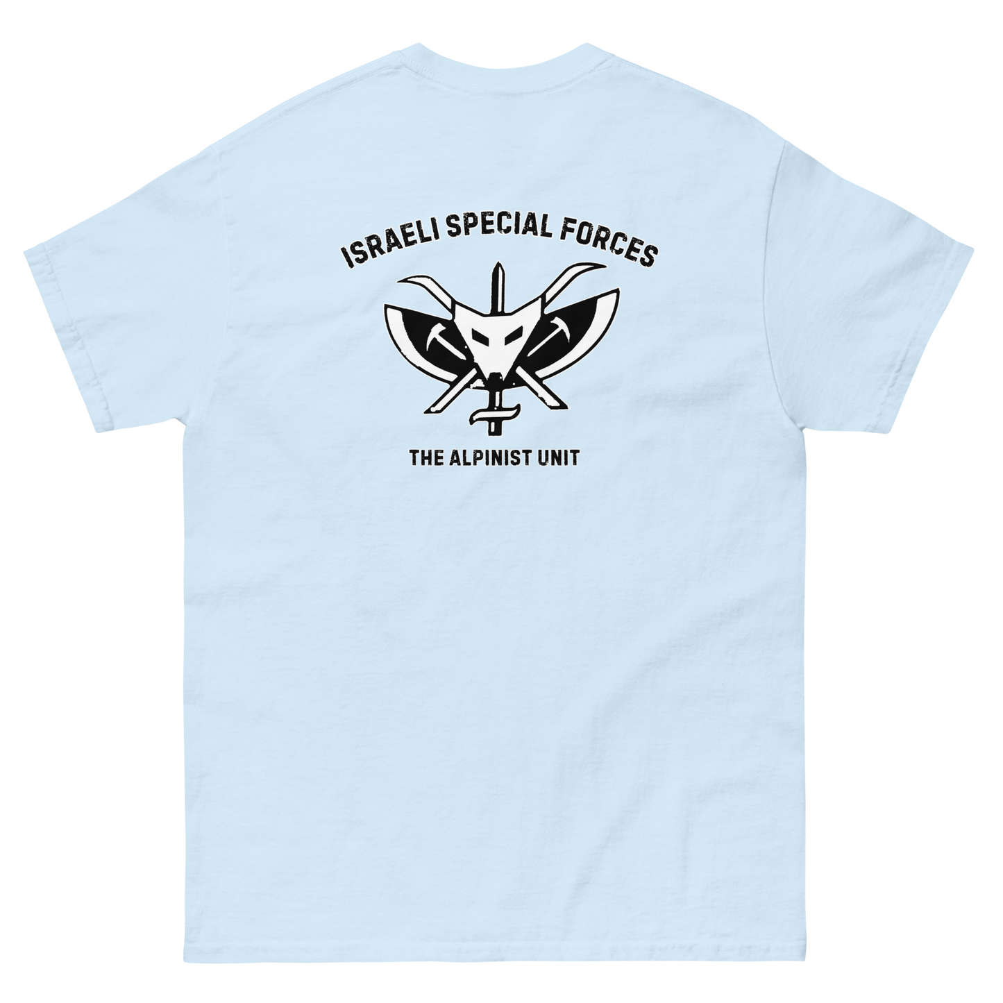 Specialized in mountain warfare, high-altitude rescue operations, and navigating Israel’s toughest terrain, the Alpinist Unit is known for their resilience and unmatched skill. This high-quality t-shirt is a tribute to their courage and expertise, offering a stylish way to honor their legacy and dedication.