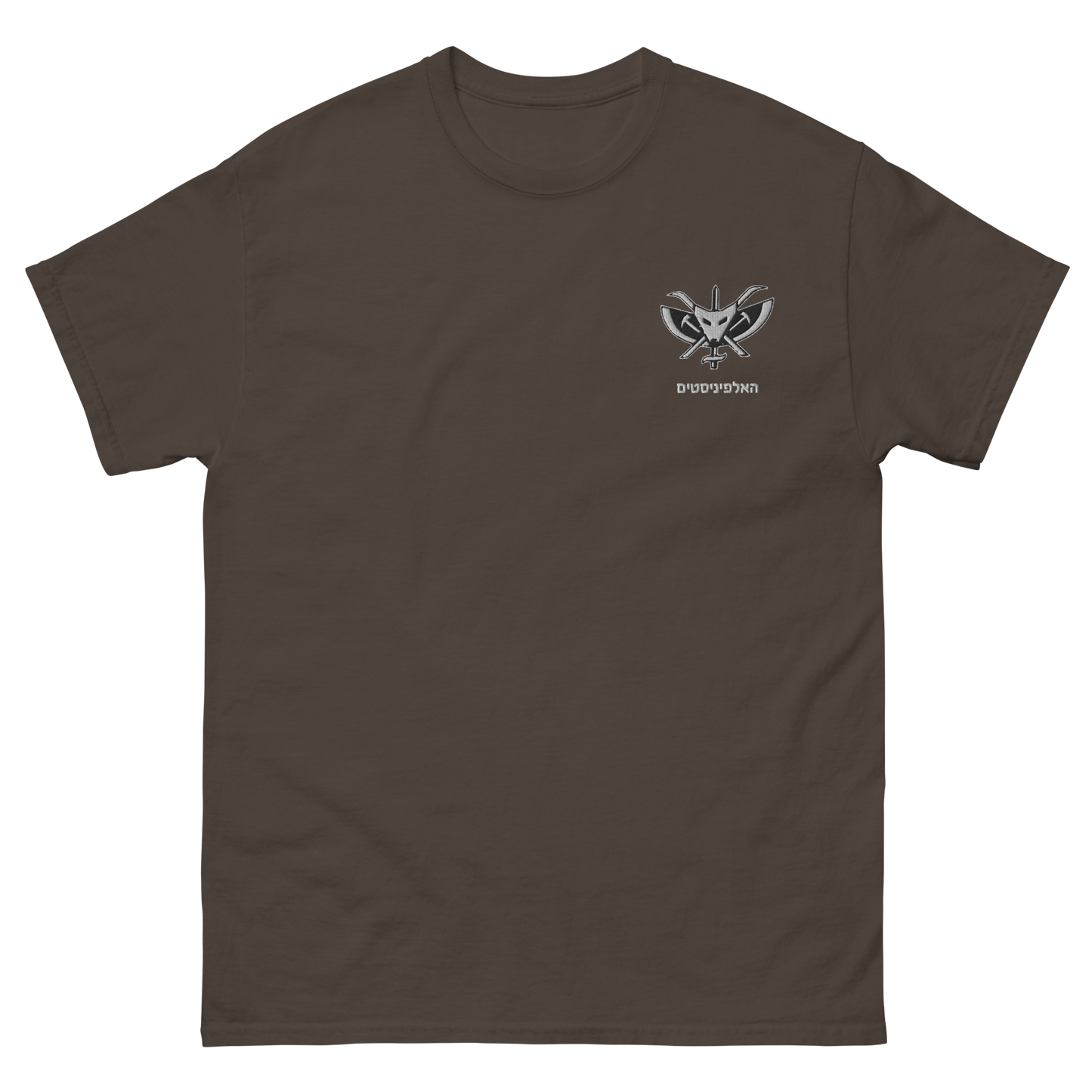 Honor the IDF Alpinist Unit with this premium t-shirt that captures the essence of elite Israeli military spirit. Featuring a bold graphic print of the unit’s logo on the back and a finely embroidered emblem on the front, this 100% cotton men’s classic tee offers a structured fit, perfect for casual wear or layered streetwear looks.