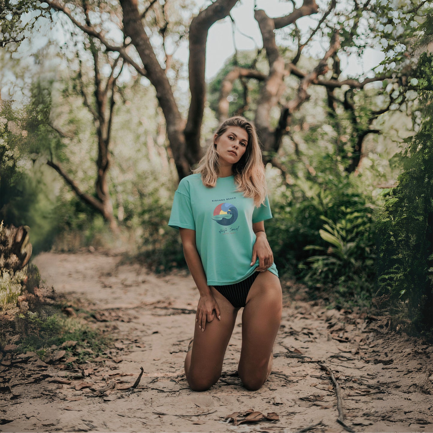 Made from 100% premium ring-spun cotton, this garment-dyed heavyweight tee delivers a thick, structured feel while staying breathable and ultra-soft for all-day comfort. The unisex oversized fit offers a relaxed, effortless look that pairs perfectly with boardshorts, denim, or leggings—whether you're hitting the waves or just lounging in coastal vibes.