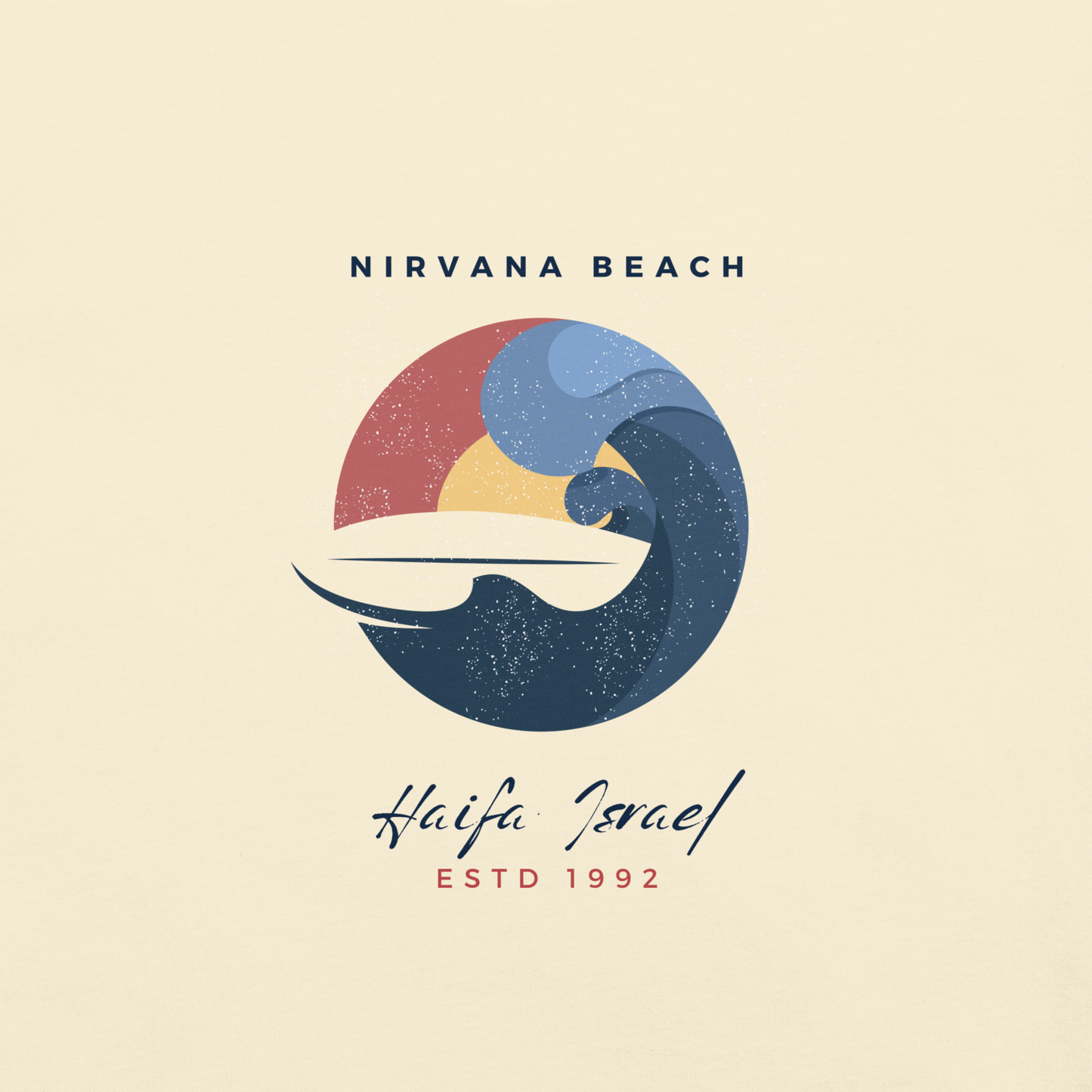Whether you’ve surfed Nirvana Beach or just dream of its shores, this graphic tee brings Israeli surf culture to your wardrobe. Ride the vibes—shop now!
