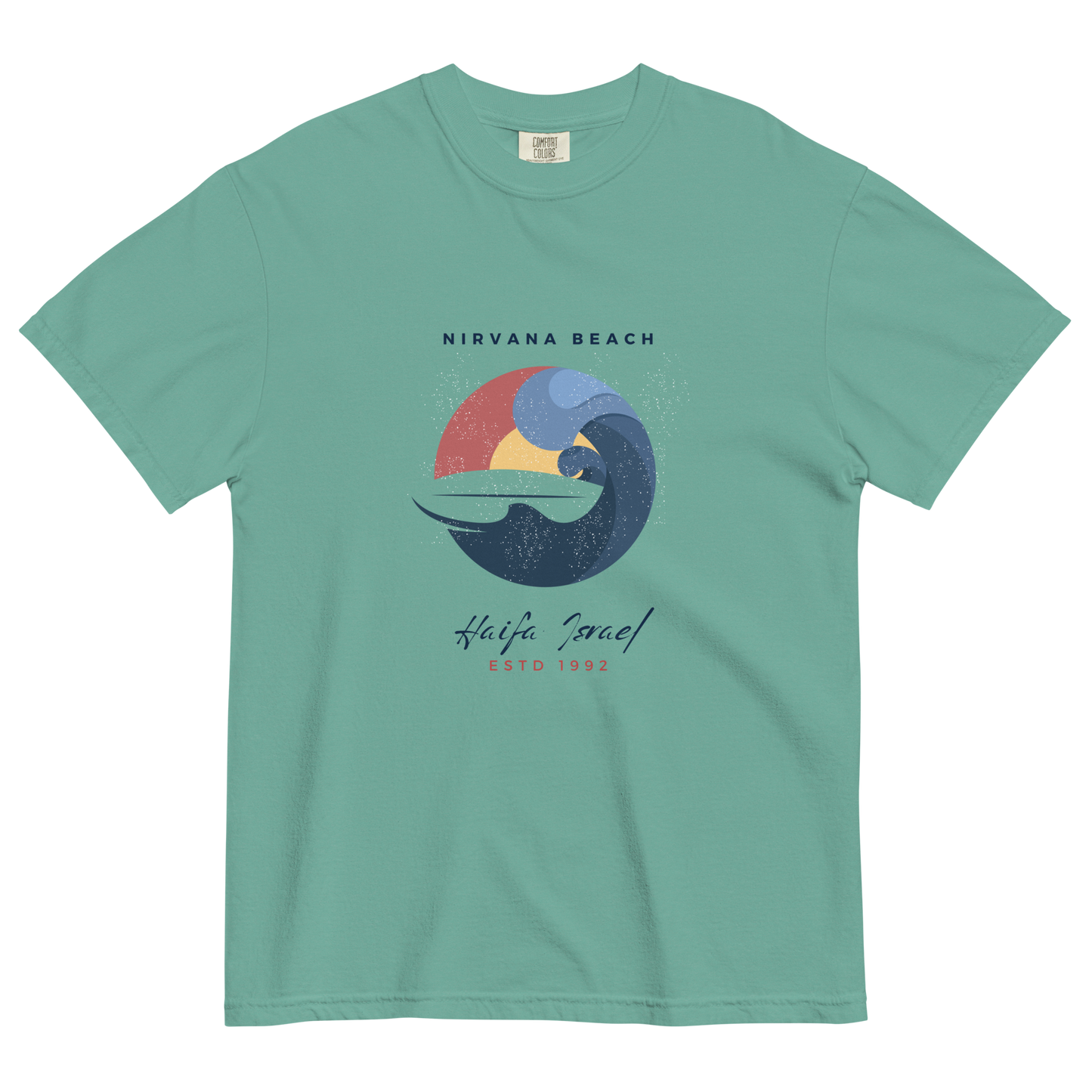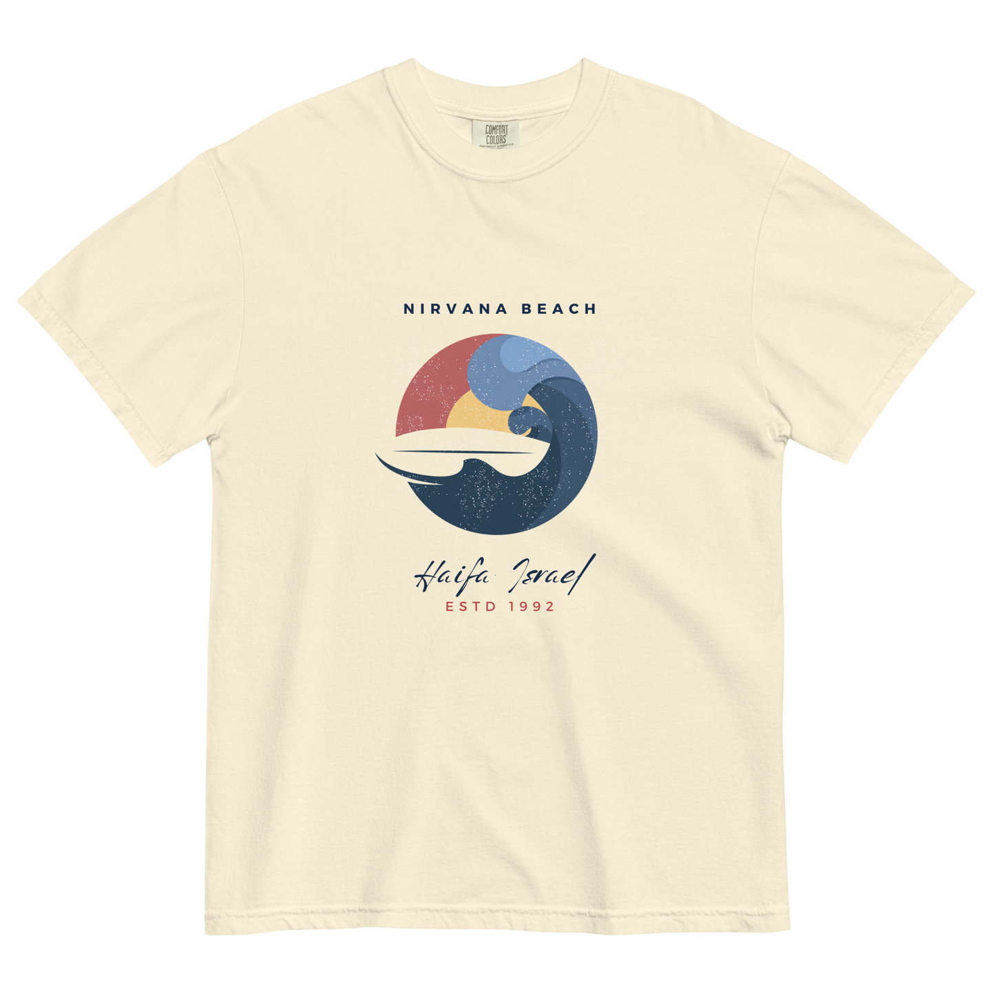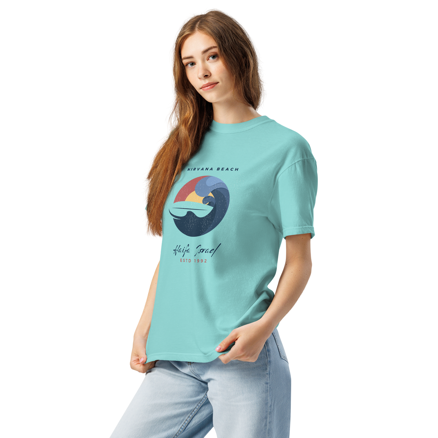 Chase the perfect wave with our women’s heavyweight graphic tee from the JBG Surf & Skate Collection, featuring a stunning wave graphic and the iconic "Nirvana Beach, Haifa, Israel" text. Inspired by the legendary surf spot, this tee is a must-have for beach lovers, surf enthusiasts, and travel junkies who want to rep their passion in laid-back style.