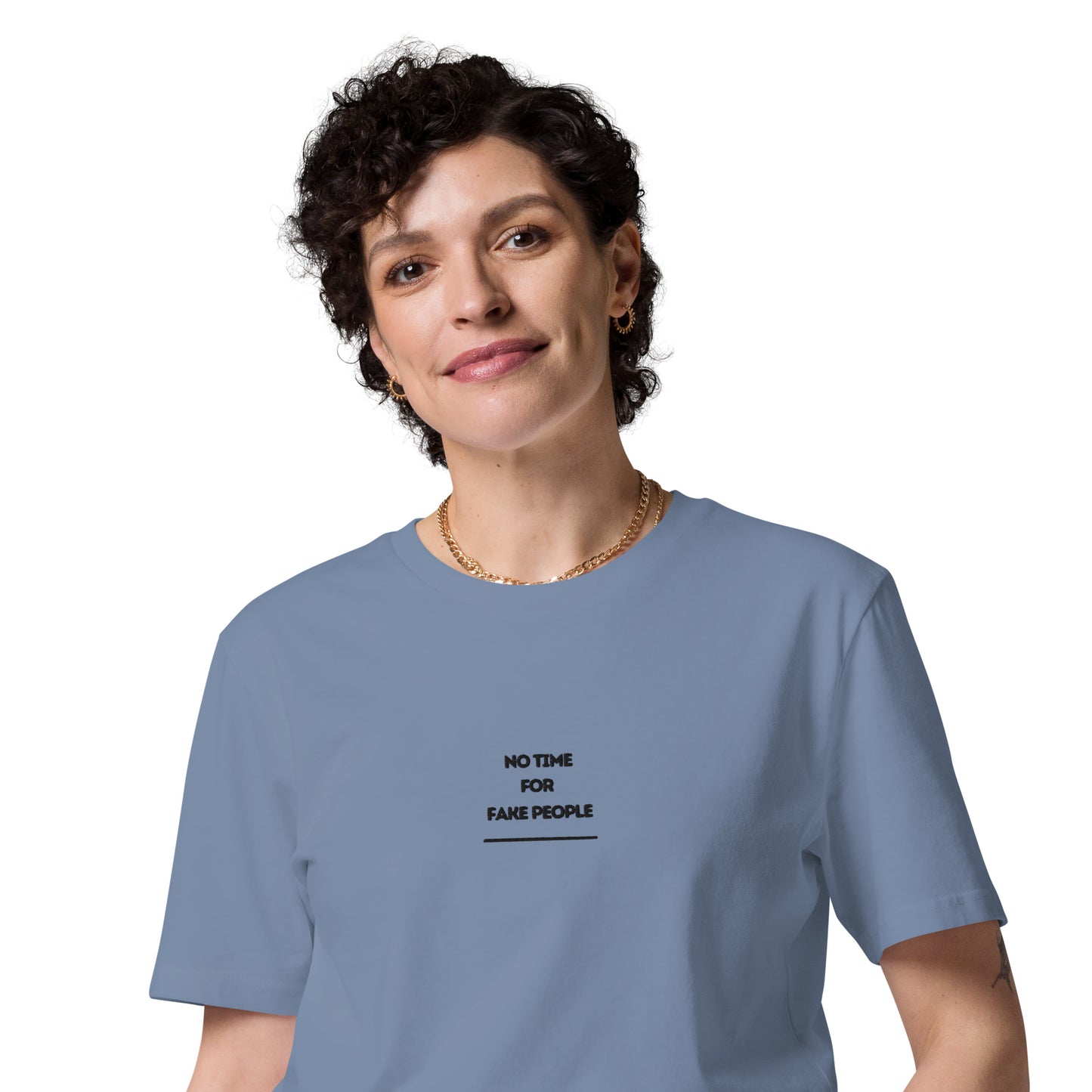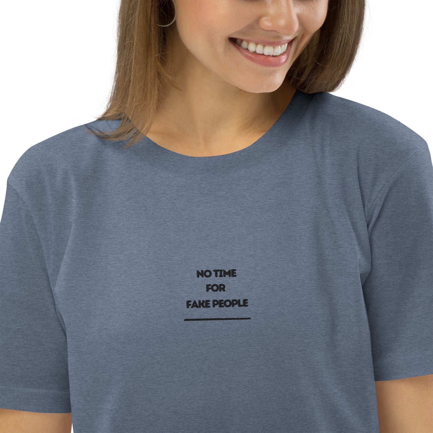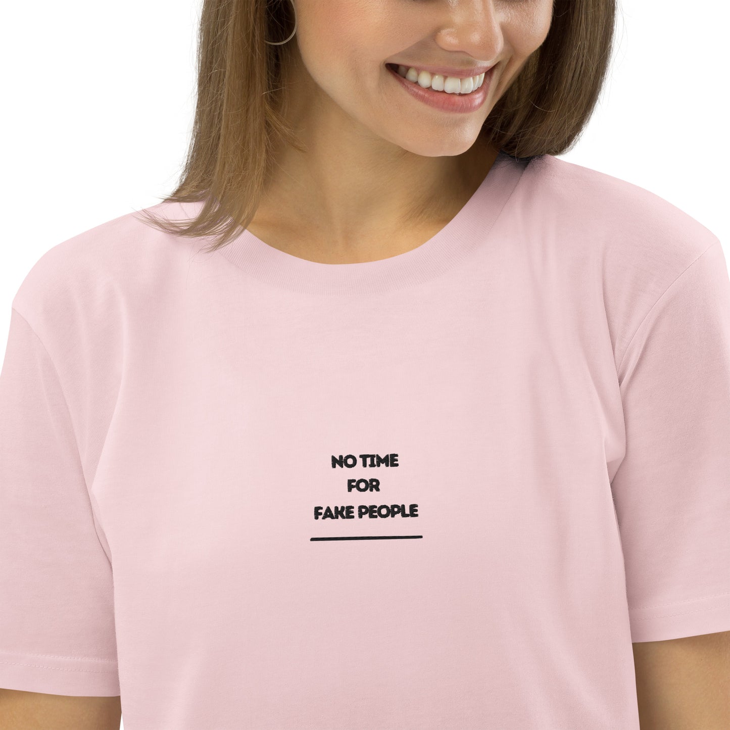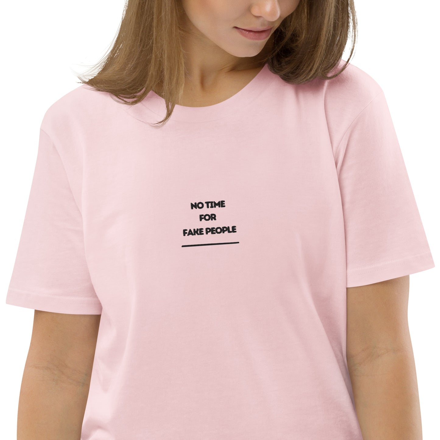 No Time for Fake People embroiderd organic cotton t-shirt