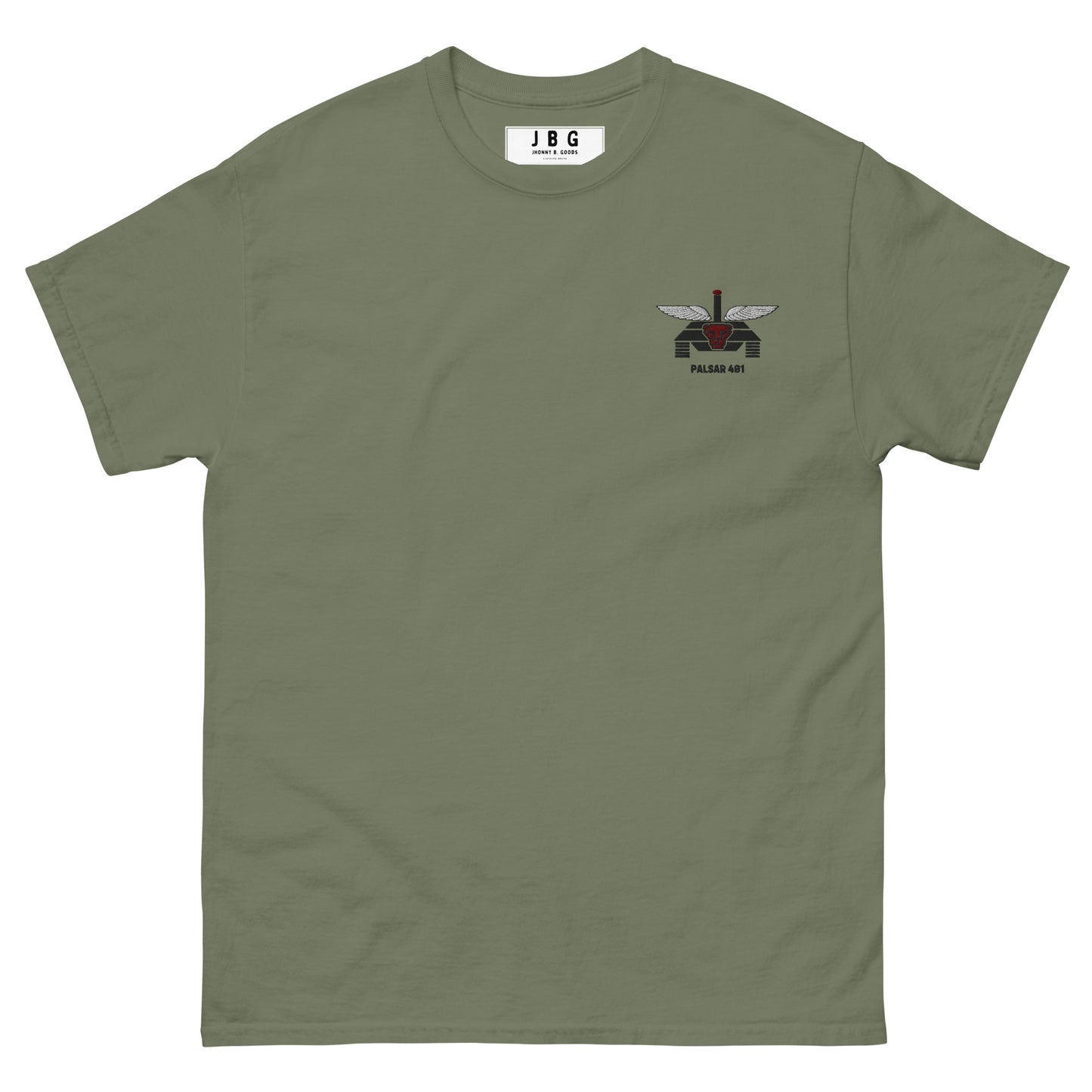 Show your support for the Palsar 401, the elite reconnaissance unit of the IDF’s Armored Corps, with this premium t-shirt that embodies authentic Israeli military pride. Featuring a bold graphic print of the unit’s logo on the back and a finely embroidered emblem on the front, this 100% cotton men’s classic tee offers a structured fit, perfect for casual or streetwear looks.