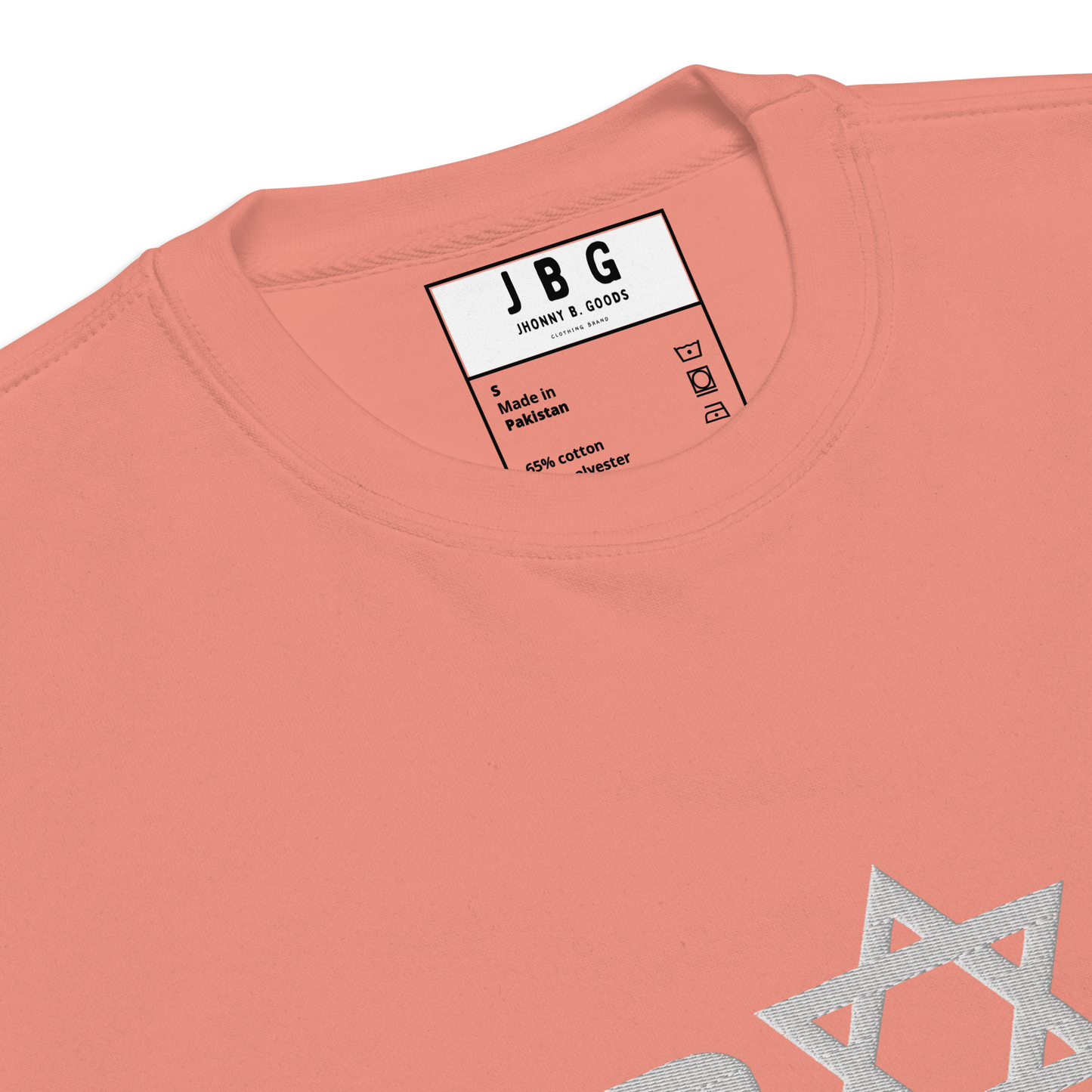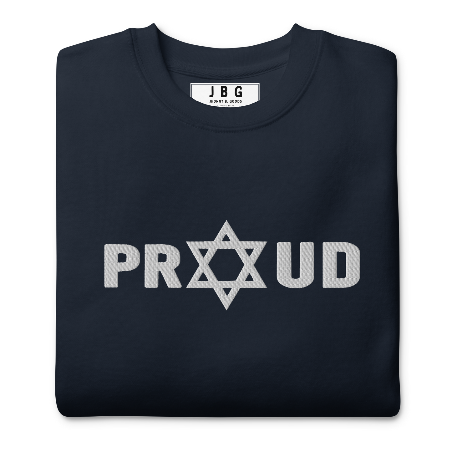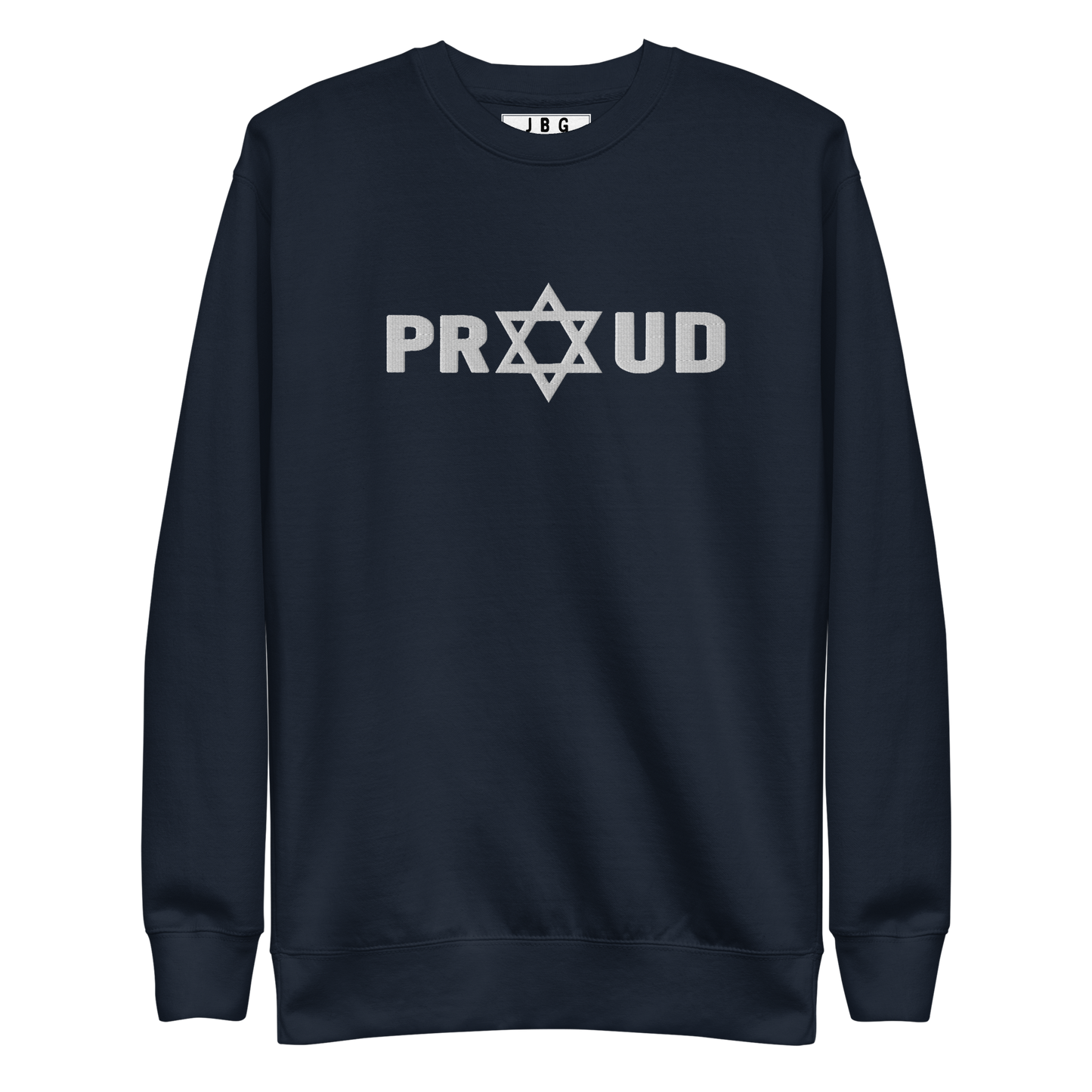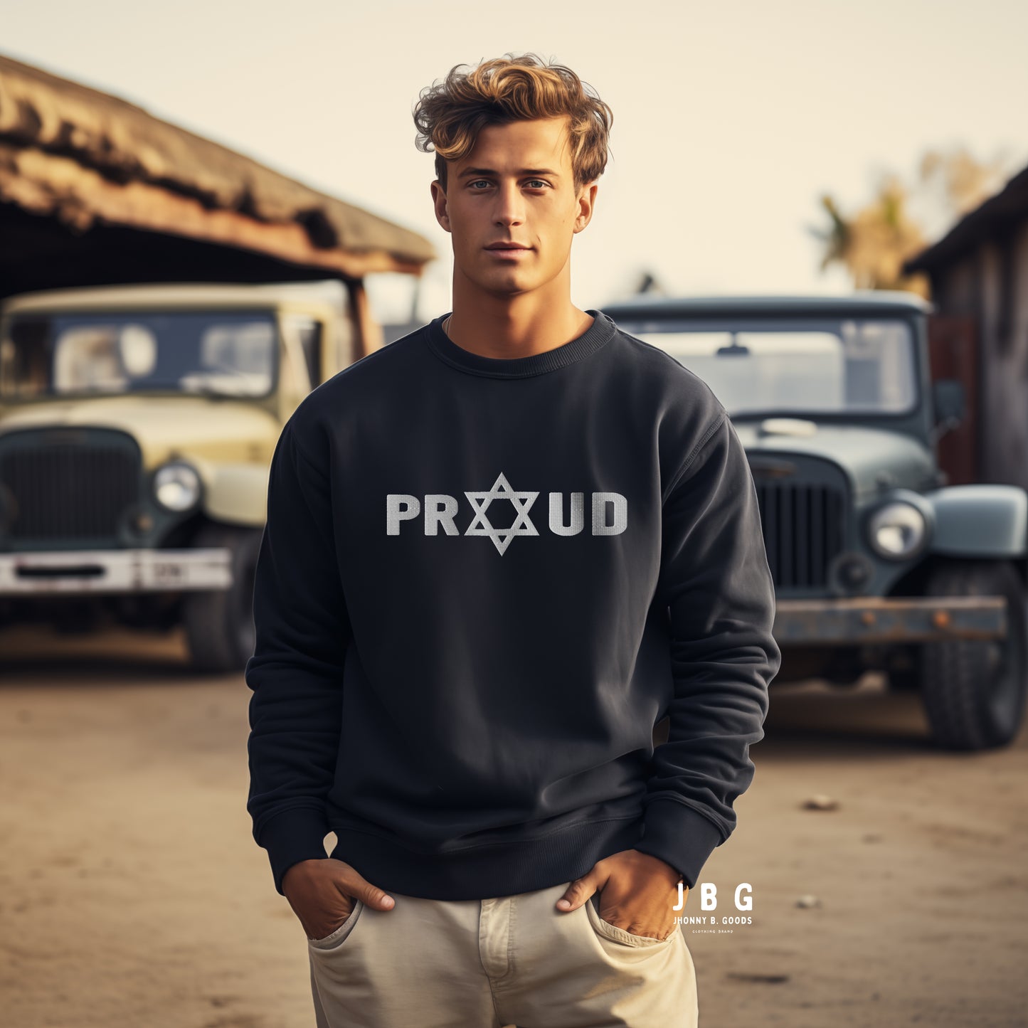 Rock a classic sweatshirt silhouette with ribbed crew neck, long sleeve cuffs, and a flat hem. Featuring a Star of David entwined with the words "Proud Jew" embroidered on the center chest, this sweatshirt is a bold statement of pride and solidarity. With its soft fleece inside and comfortable fit, it’s perfect for layering or wearing solo—sure to become your favorite everyday sweater.