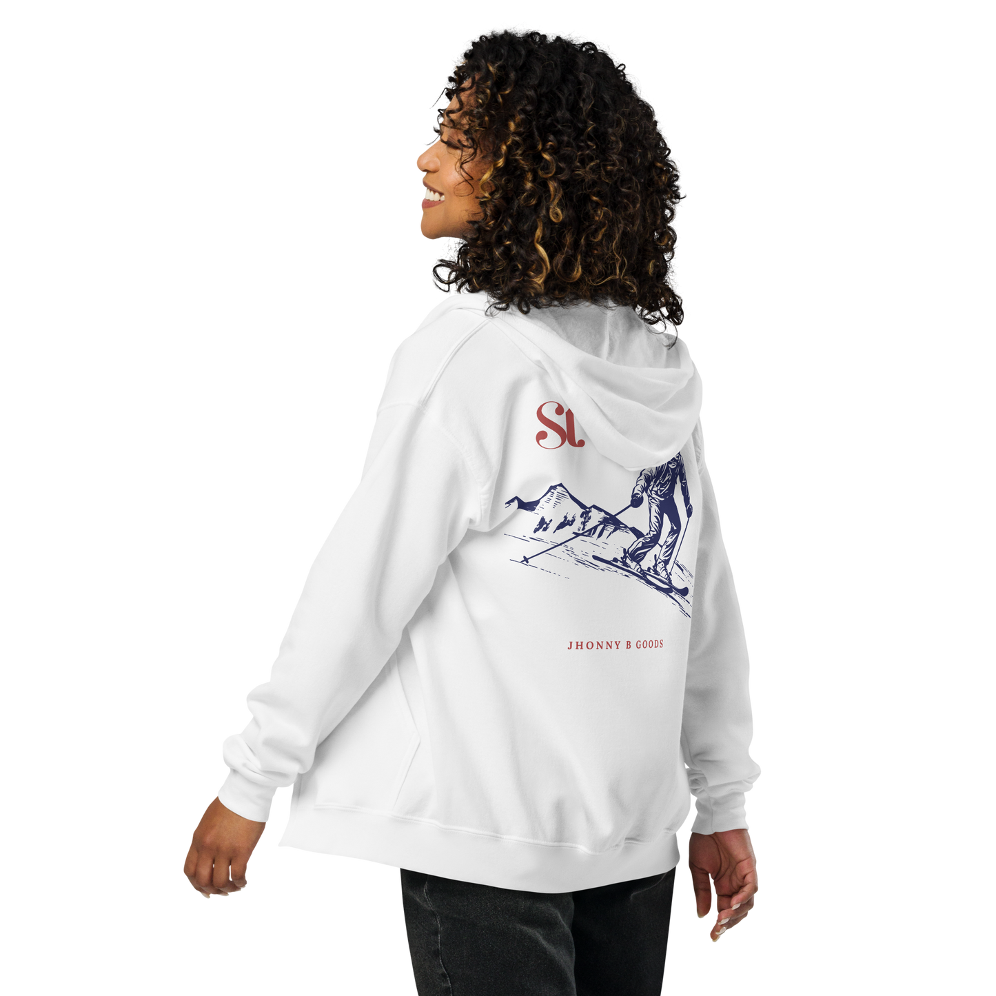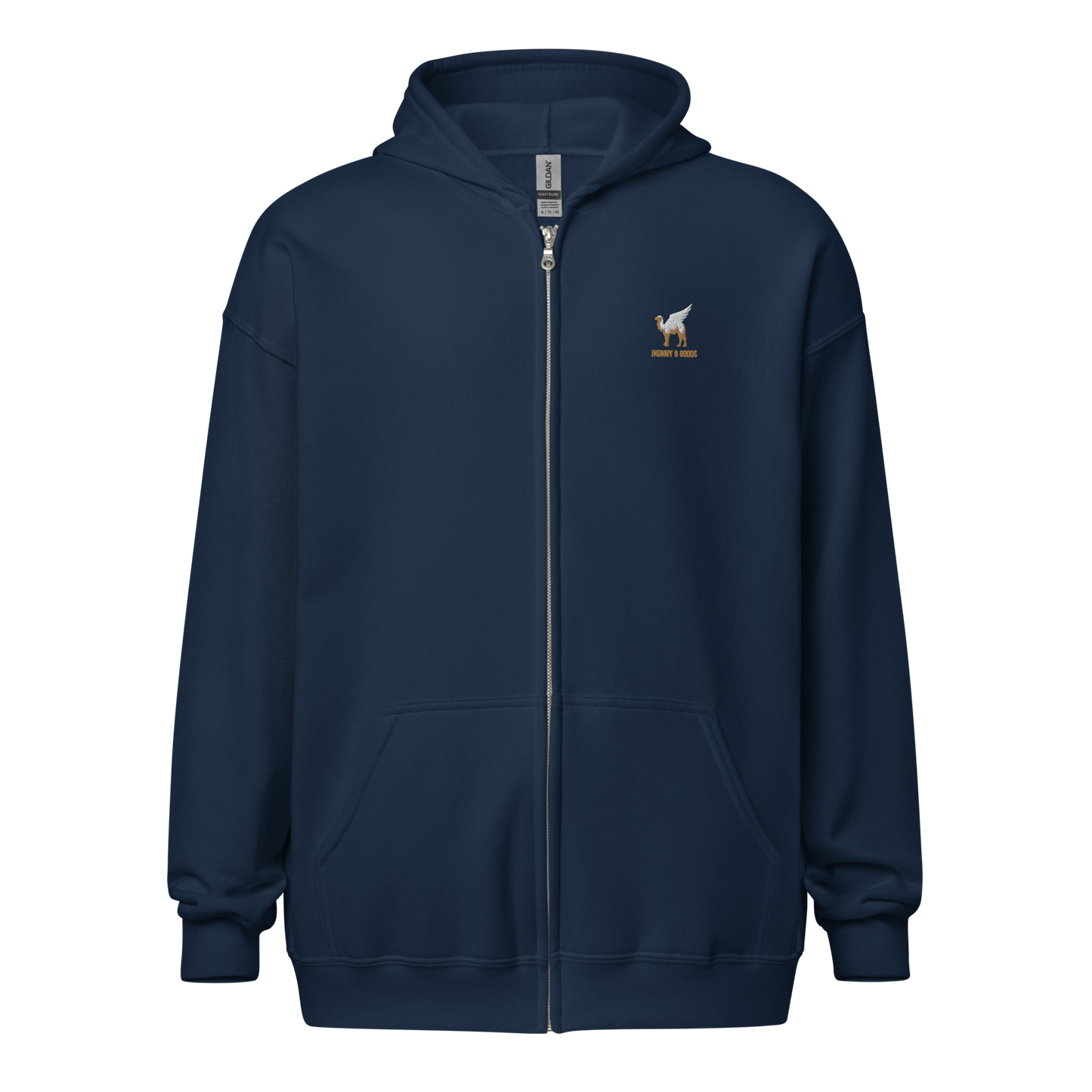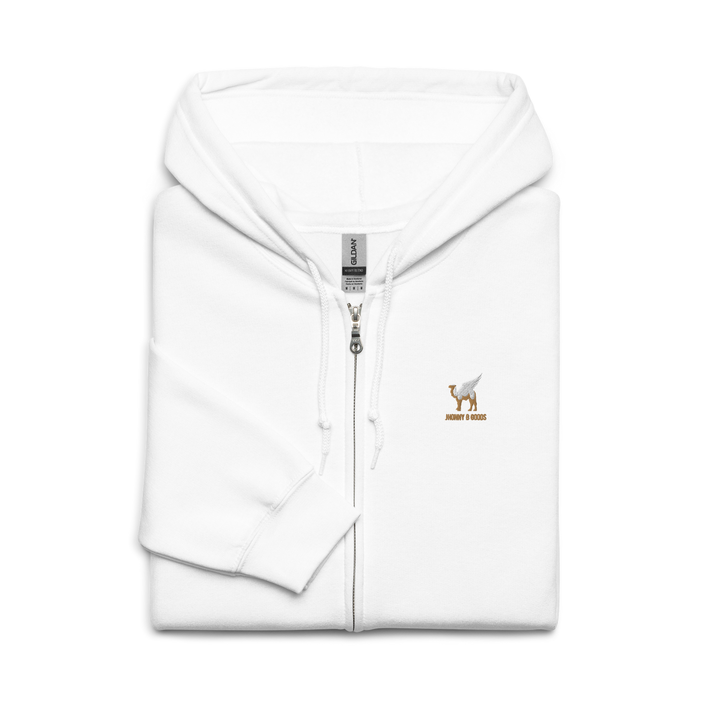 Designed with style and comfort in mind, this hoodie will quickly become your new favorite. It’s made from soft fleece inside and outside, with a sturdy metal zipper, convenient front pockets, and a hood with color-matched drawstrings.