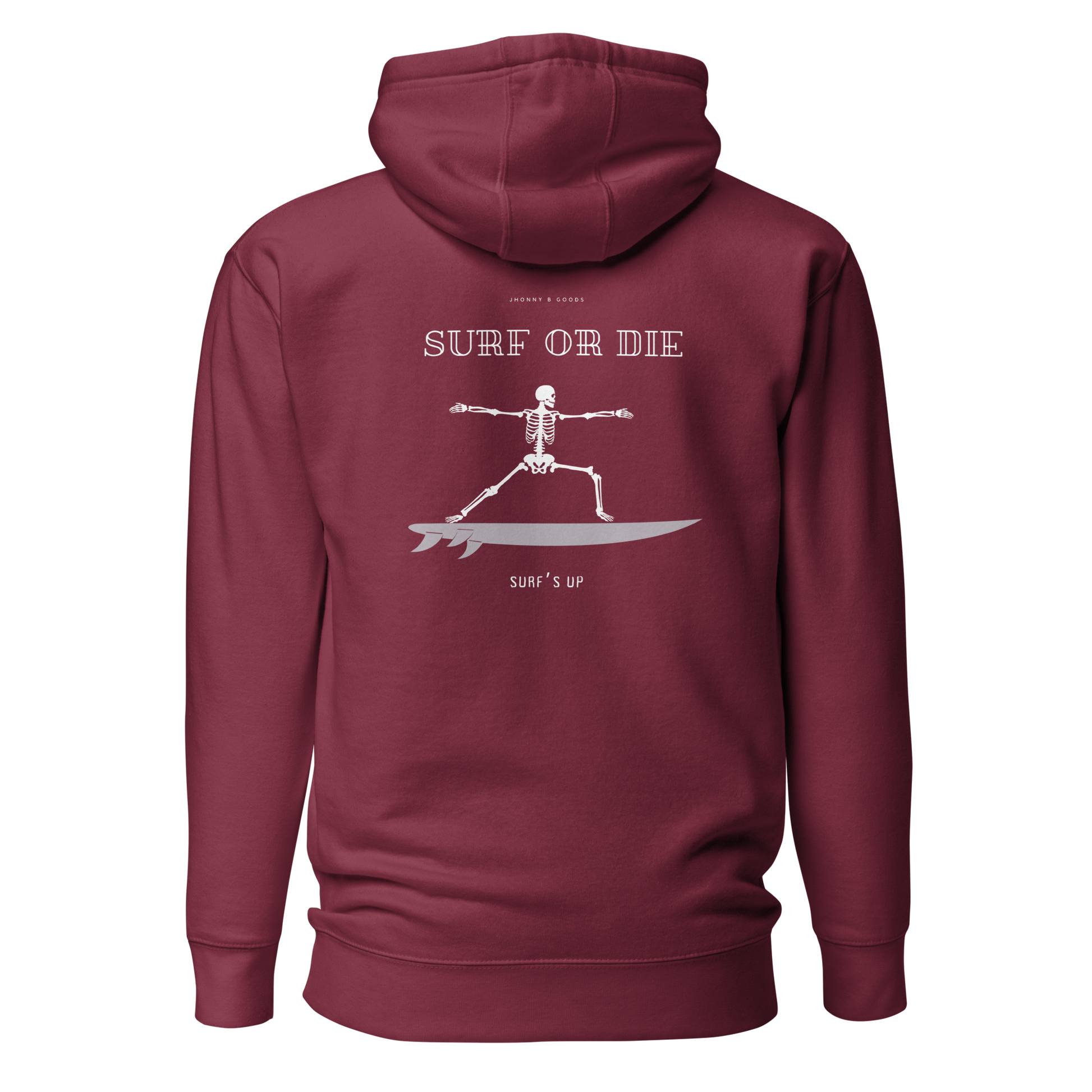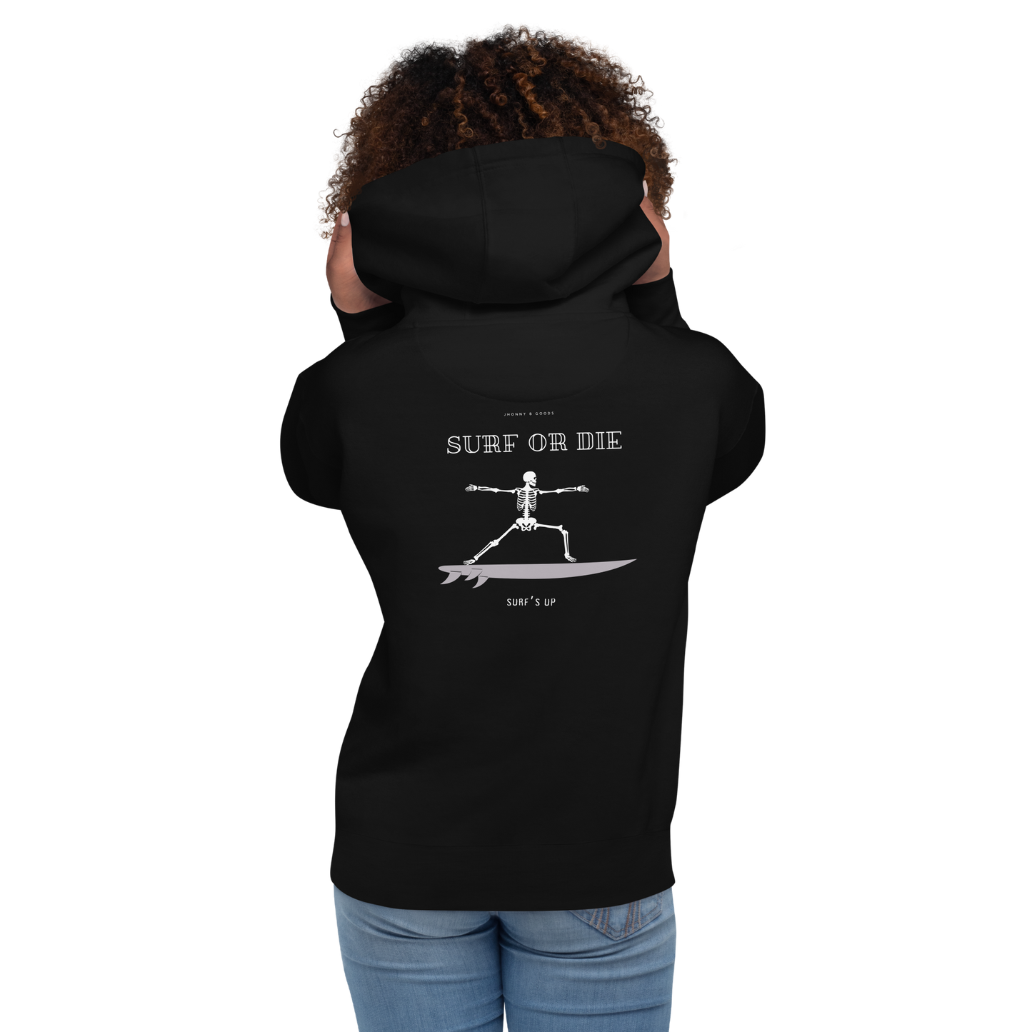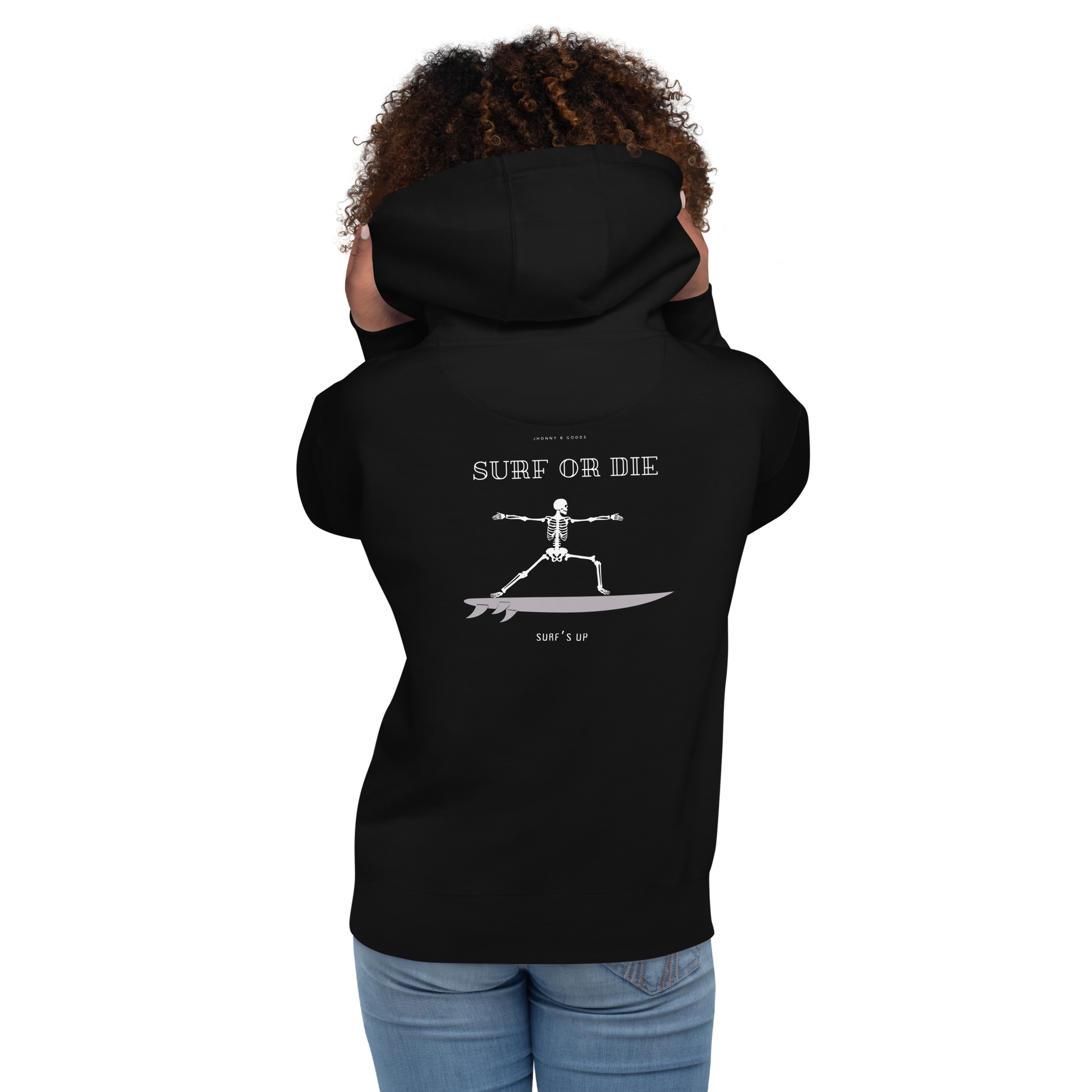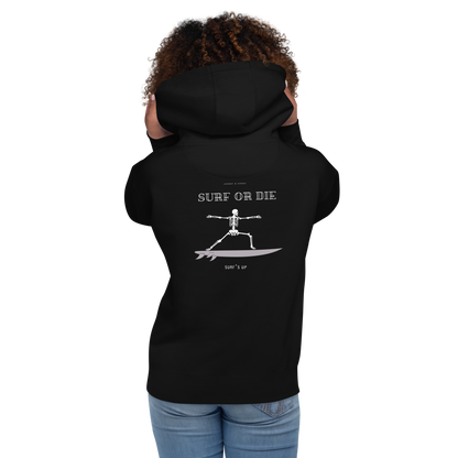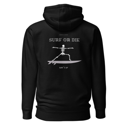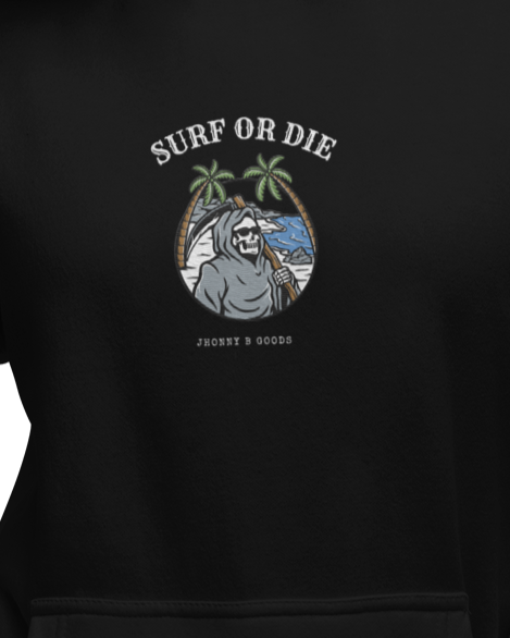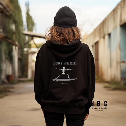 Women’s Heavyweight Premium Hoodie – Embroidered Design & "Surf or Die" Skeleton Graphic | JBG Surf & Skate Collection
