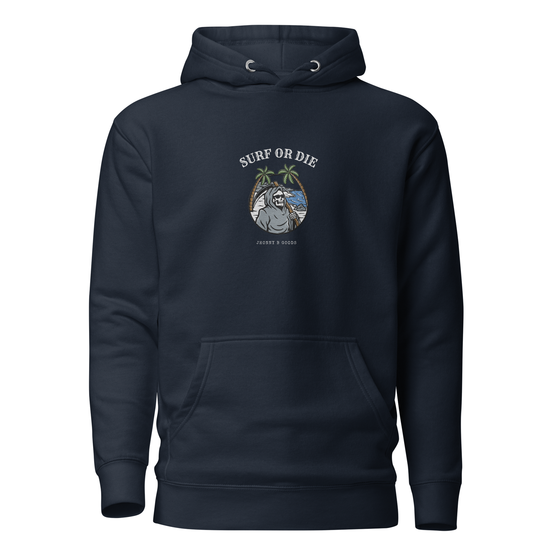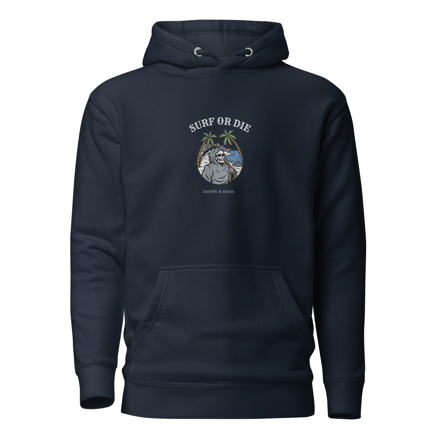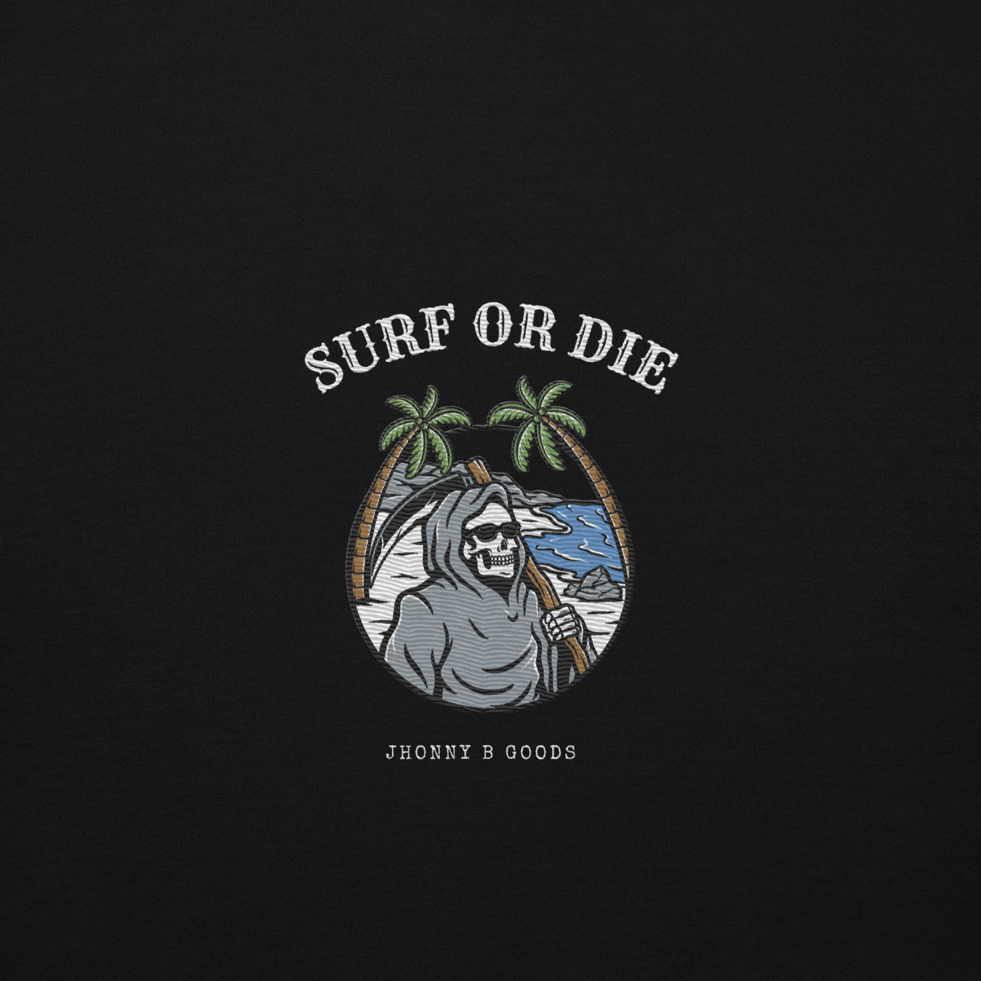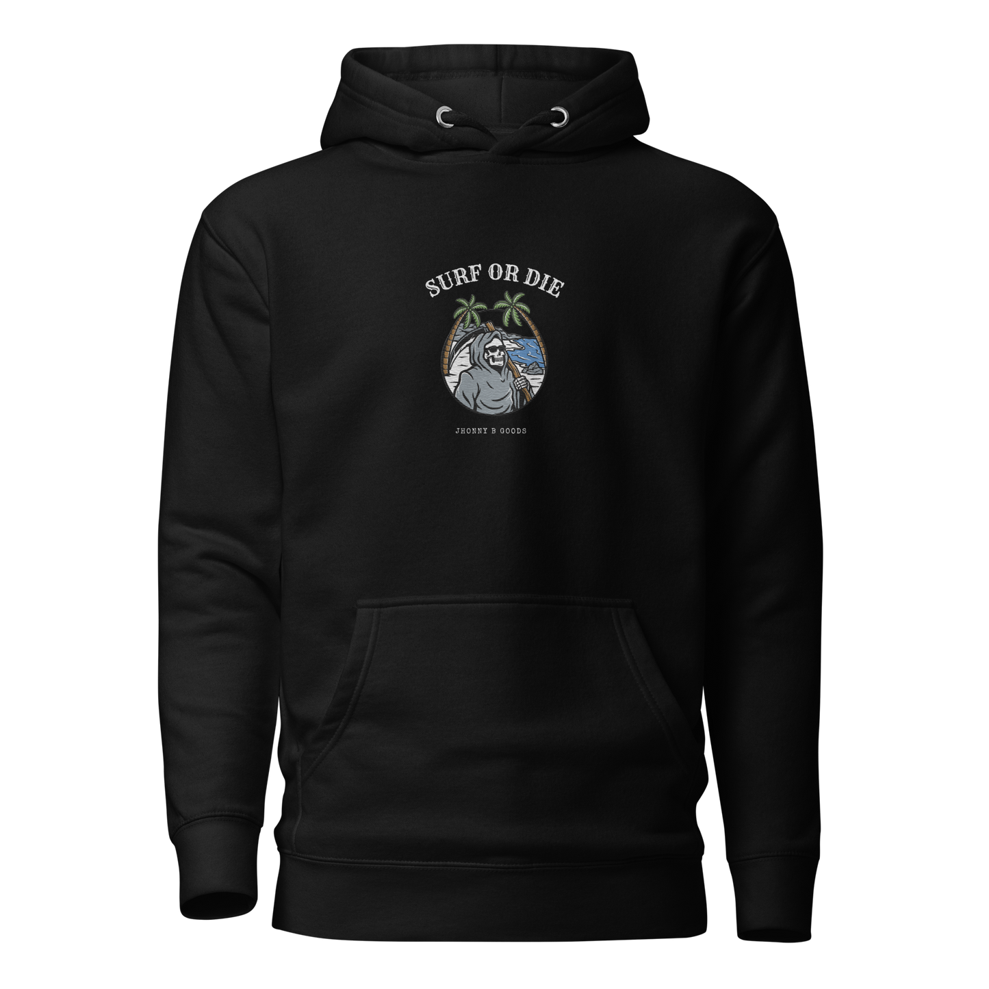 Women’s Heavyweight Premium Hoodie – Embroidered Design & "Surf or Die" Skeleton Graphic | JBG Surf & Skate Collection