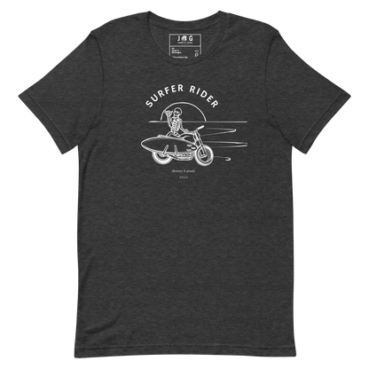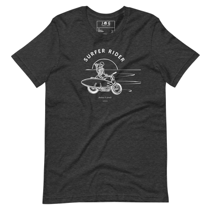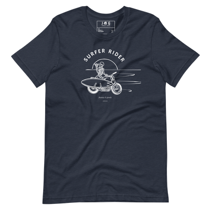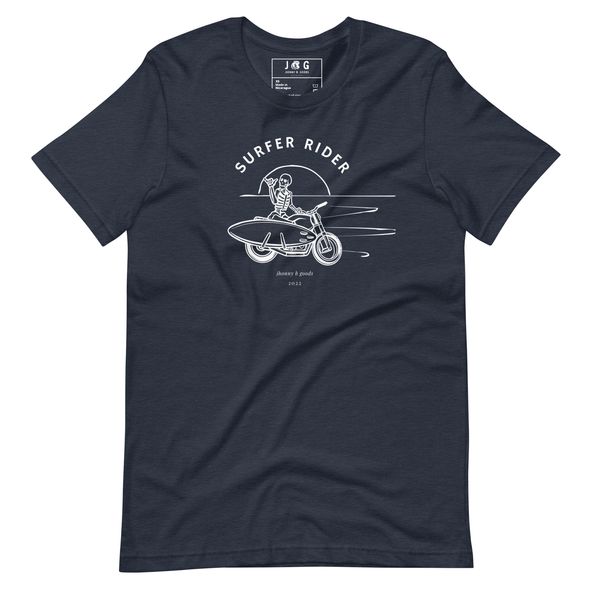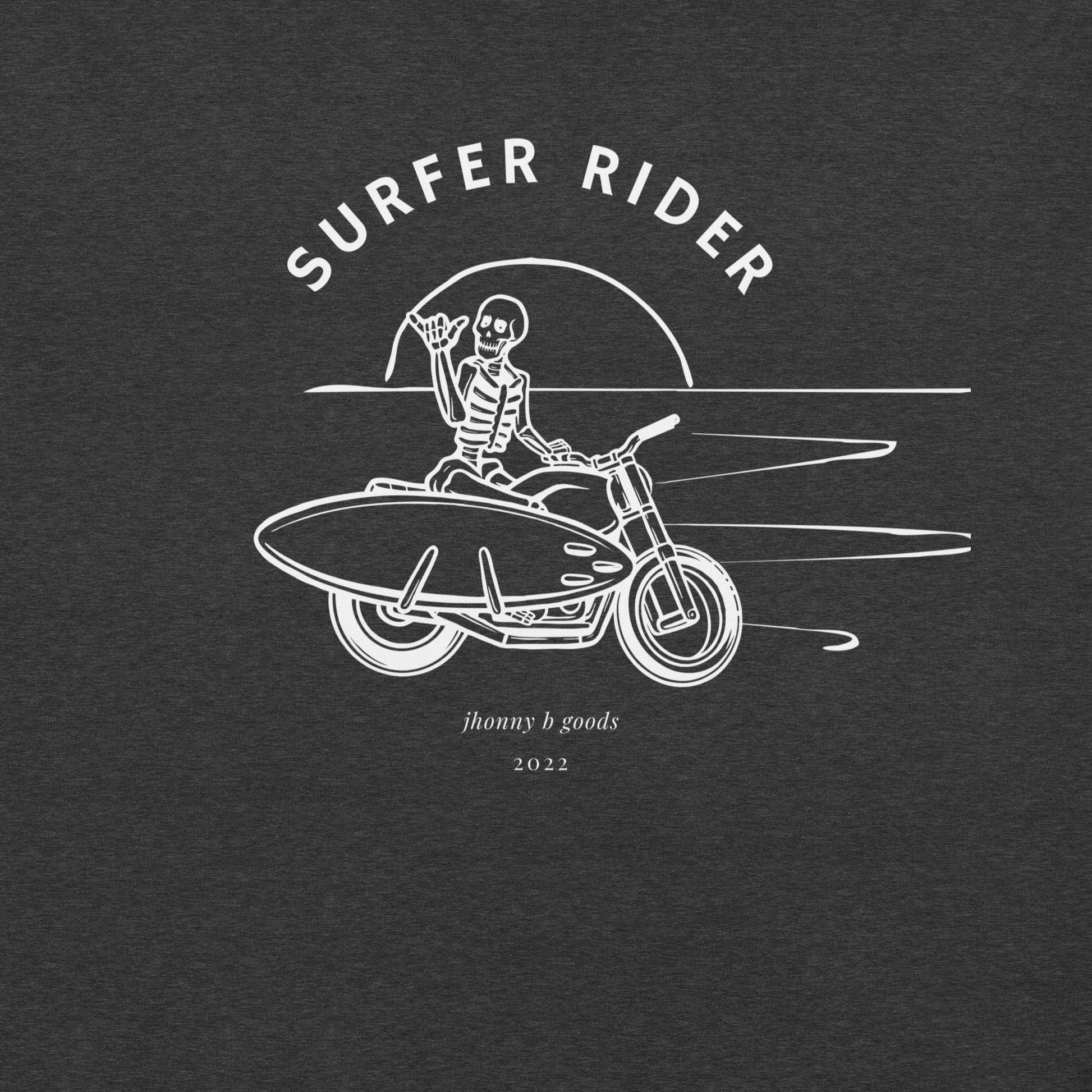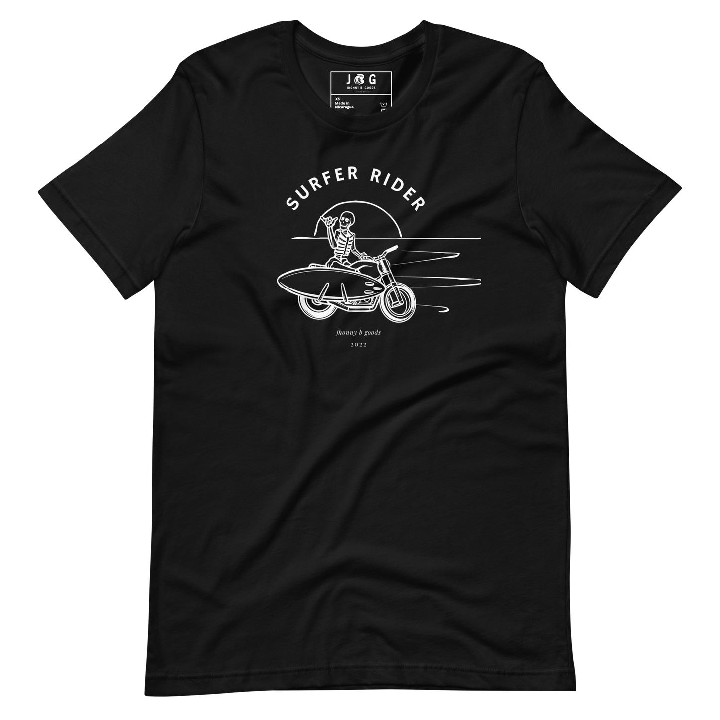 Live life on the edge with our Skeleton Surf Rider Tee, featuring a bold graphic of a skeleton riding a motorcycle while clutching a surfboard on the chest. Part of JBG’s Women’s Surf & Skate Collection, this lightweight, ultra-soft tee is for the rebels, the wave riders, and the free spirits who blend surf culture with a touch of punk attitude.