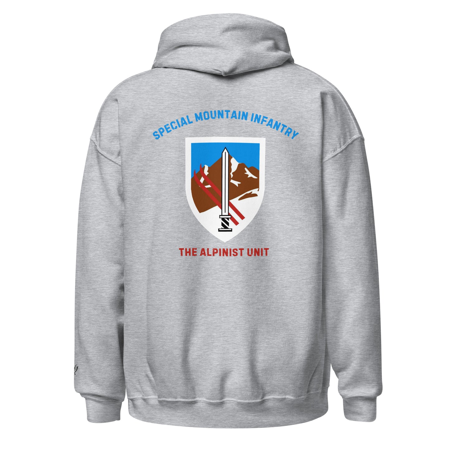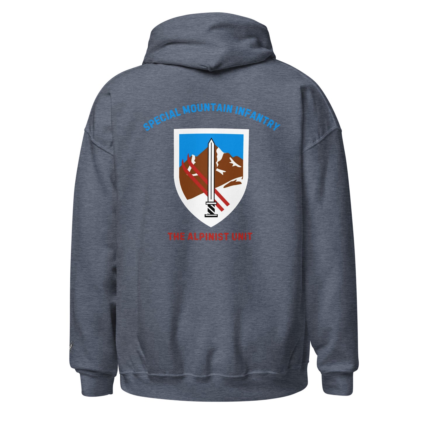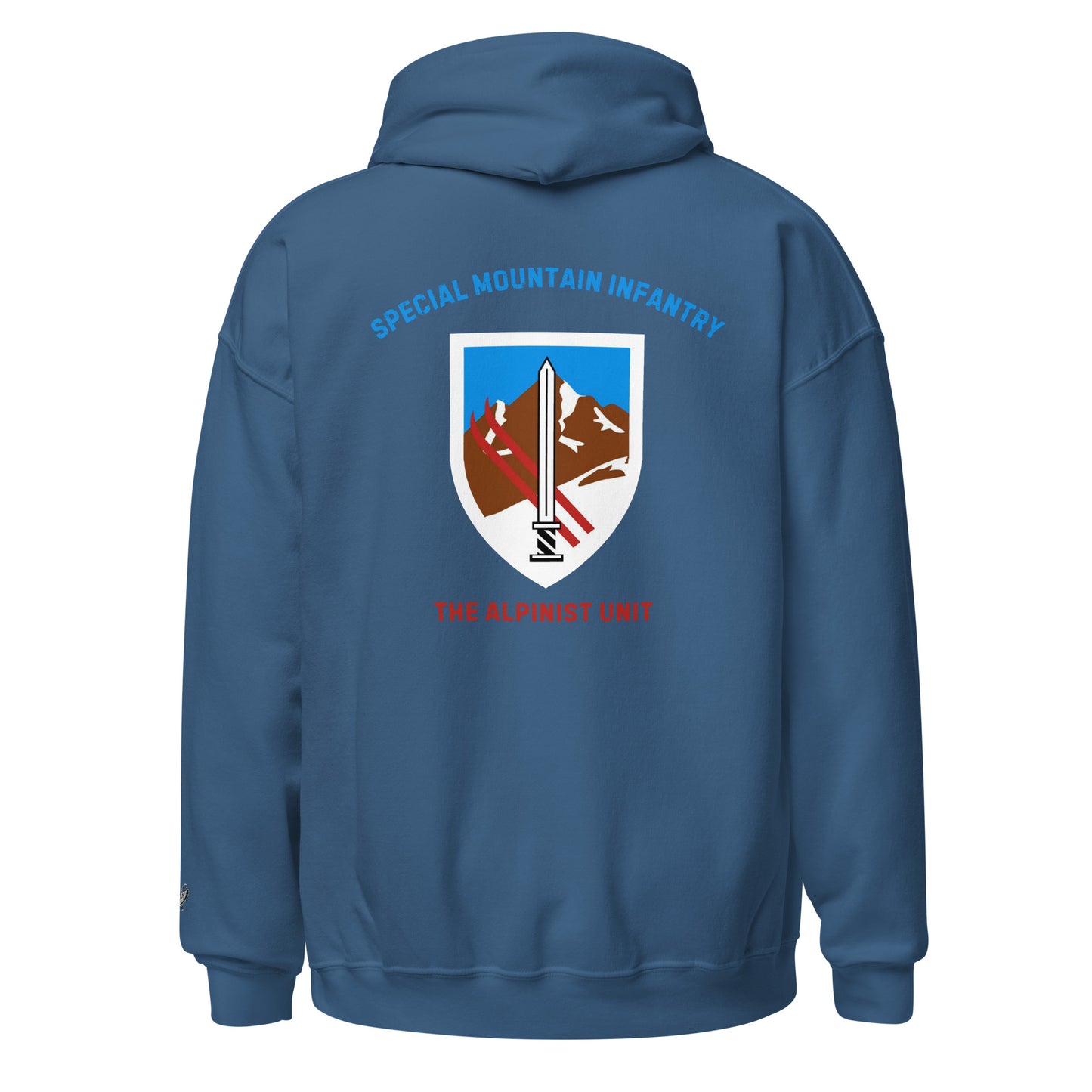 Show your support for the elite IDF Alpinist Unit with this classic hoodie, featuring an embroidered unit logo on the chest and on the left sleeve plus the brigade patch logo on printed on the back. Soft, smooth, and stylish, this cozy hoodie is perfect for cooler evenings or casual wear.