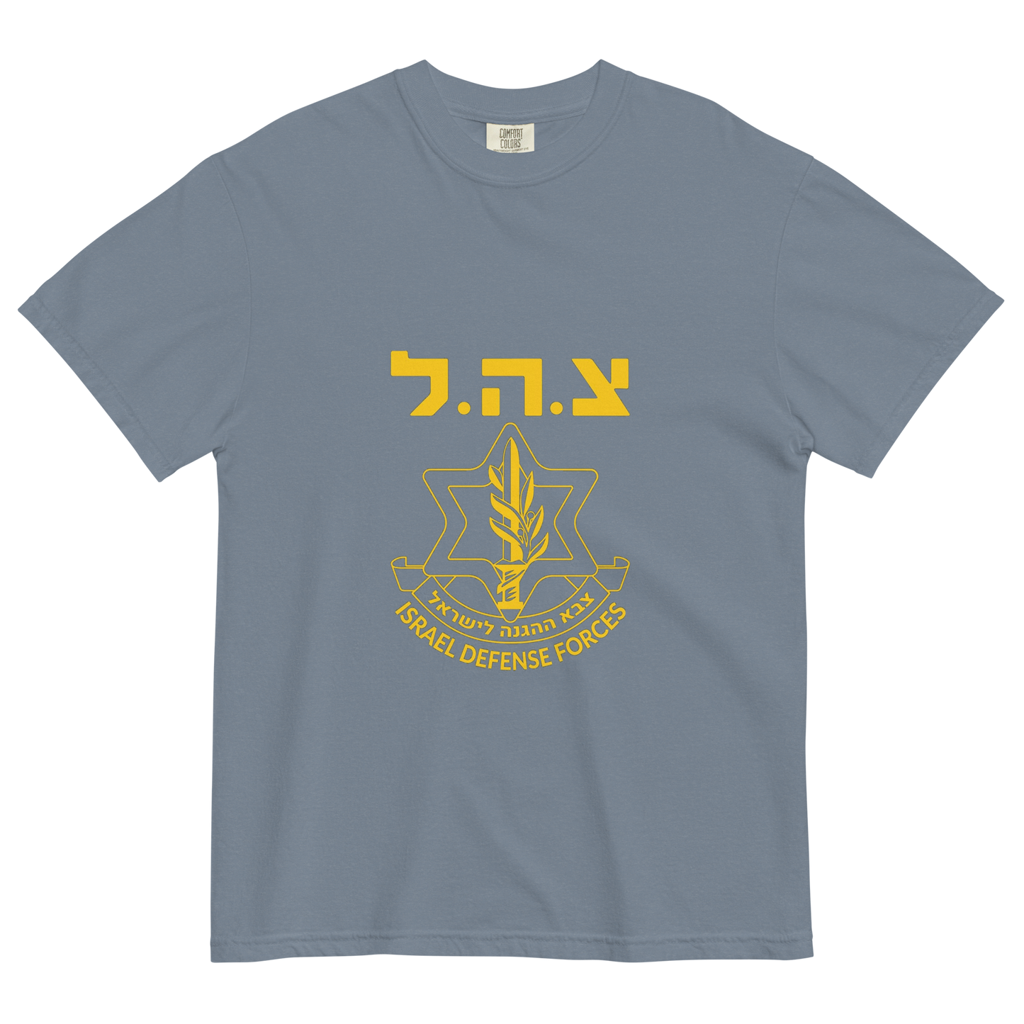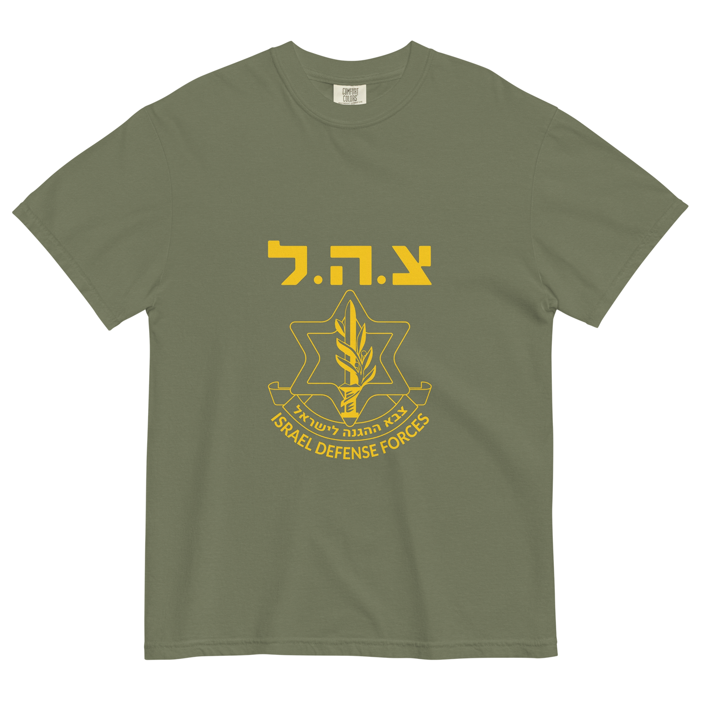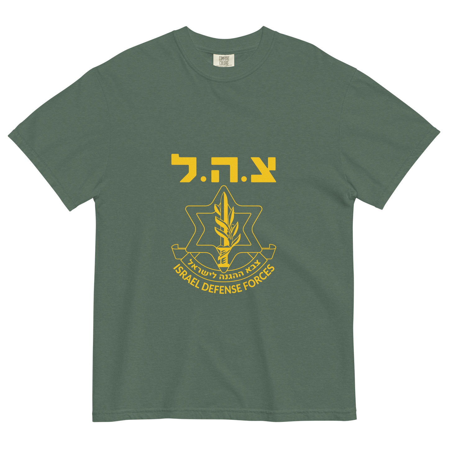 Show your pride for the Israeli Defense Forces (IDF) with this premium t-shirt, featuring a bold graphic print of the iconic IDF logo. Made from 100% ring-spun cotton, this heavyweight, garment-dyed tee offers a thick, structured fit thatโs both super soft and breathable, ensuring comfort all day long. Known for its resilience, innovation, and commitment to national defense, the IDF stands as a symbol of strength and security. This stylish t-shirt is a perfect way to honor the IDFโs dedication and add an authentic touch of Israeli spirit to your wardrobe.