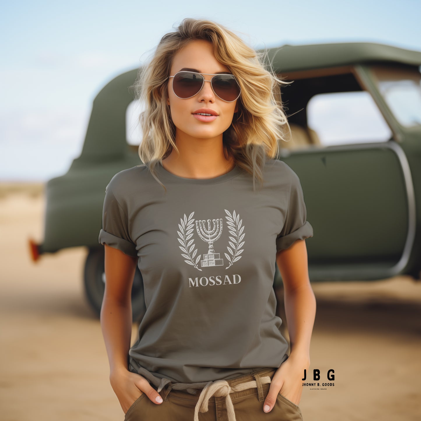 show your support for the Mossad, Israel's elite intelligence agency, with this premium t-shirt that is everything you've dreamed of and more. It feels soft and lightweight, with the right amount of stretch. It's comfortable and flattering for all. Featuring a graphic emblem of the mossad . It's a stylish way to express your appreciation for the Mossadβs dedication to intelligence gathering, counter-terrorism, and security operations. Known for their covert missions and precision, the Mossad is one of the world's most respected intelligence agenciesβthis high-quality t-shirt is a tribute to their unparalleled expertise.Β