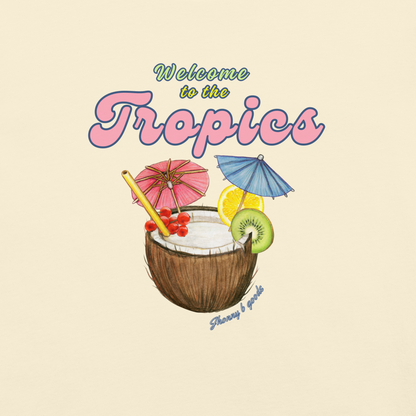 Escape to paradise with our women’s heavyweight graphic tee from the JBG Surf & Skate Collection! Featuring a vibrant tropical drink illustration and the playful phrase "Welcome to the Tropics," this tee brings vacation vibes to your everyday wardrobe. Perfect for beach days, skate sessions, or casual outings, this soft, structured t-shirt combines comfort with laid-back style.