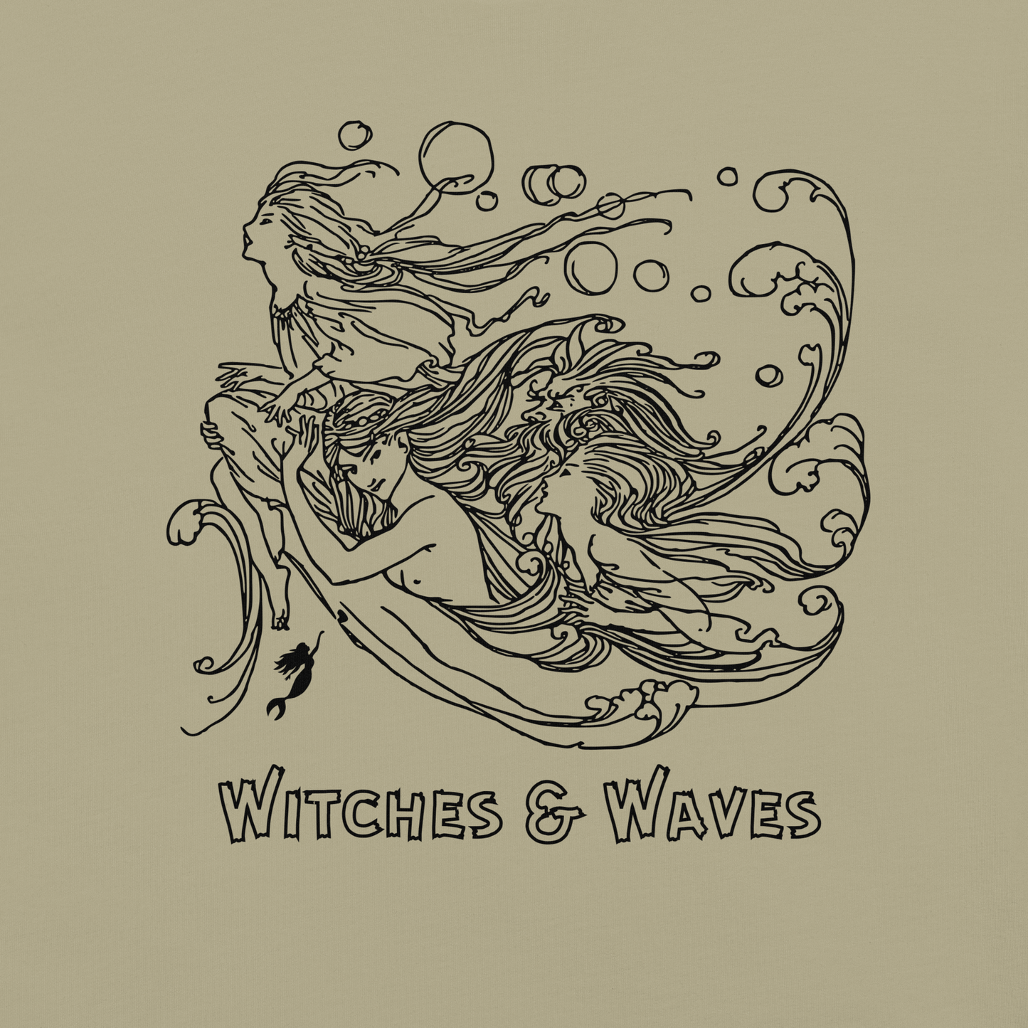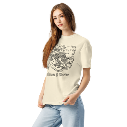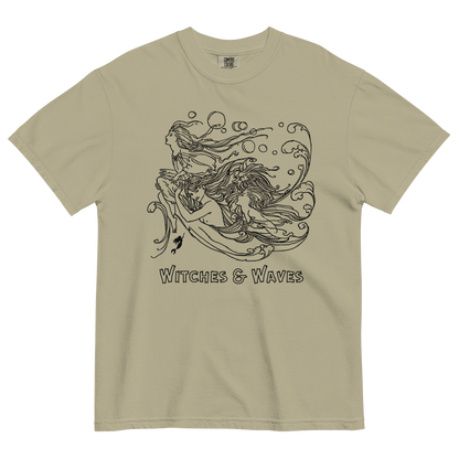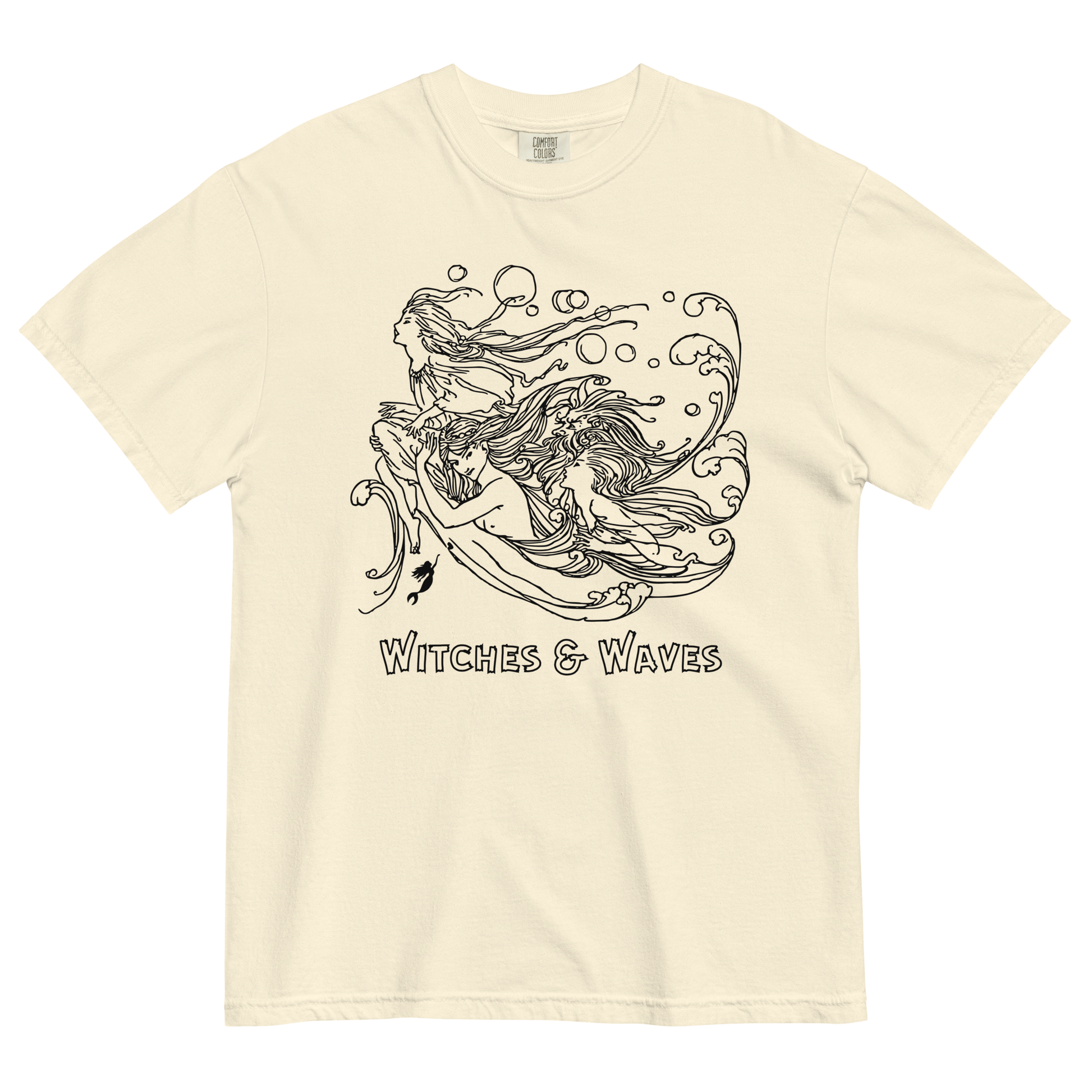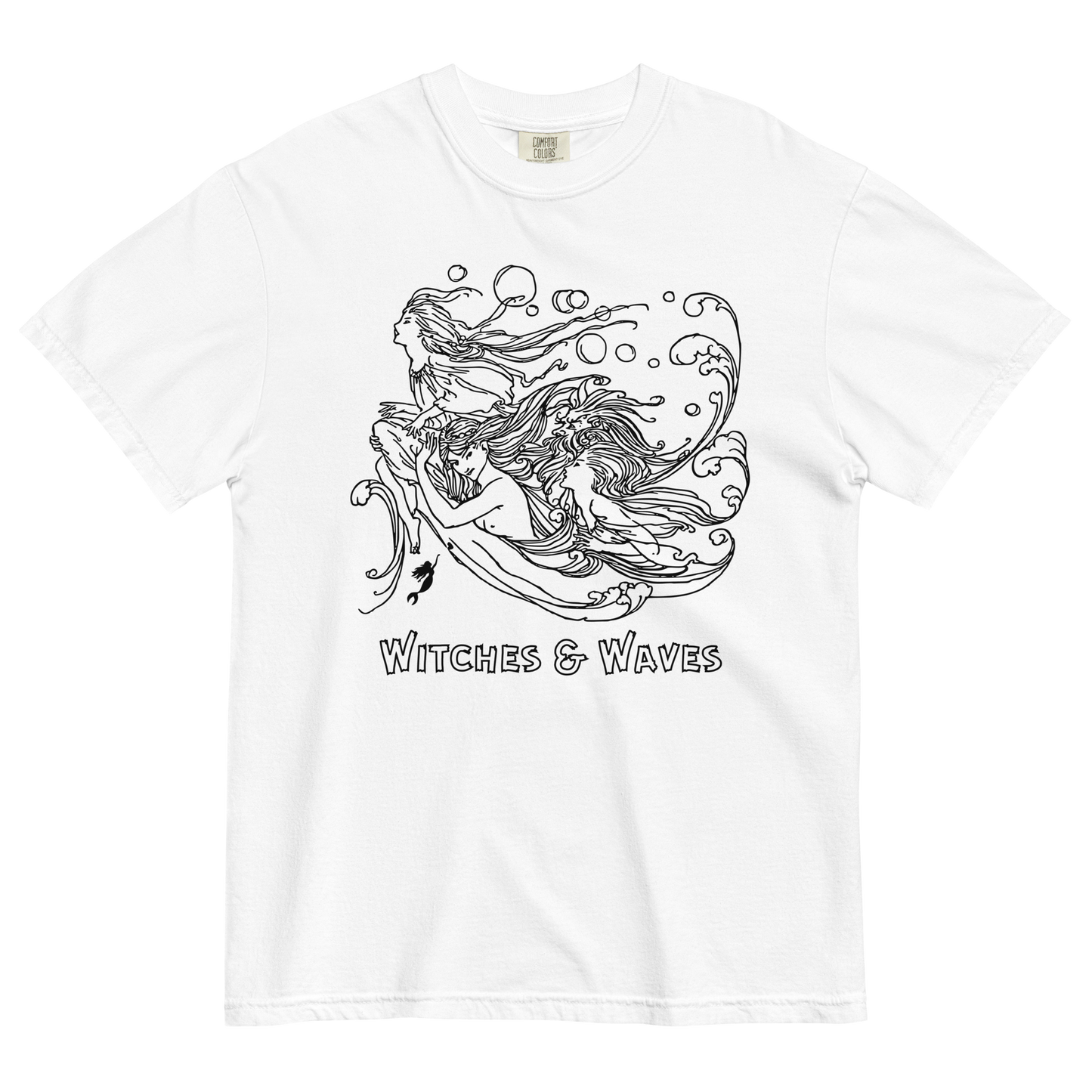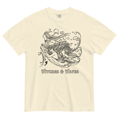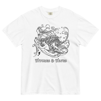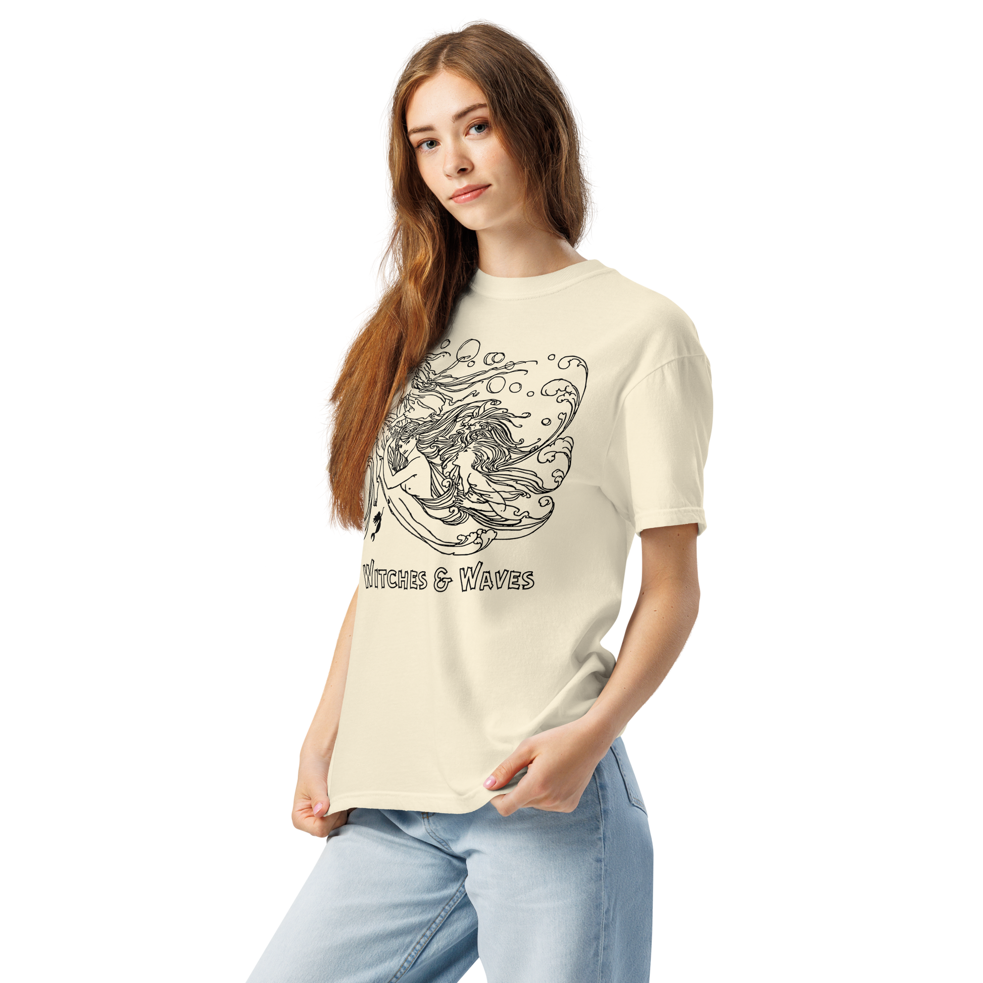 Embrace the mystical allure of the ocean with our women’s heavyweight graphic tee from the JBG Surf & Skate Collection. This eye-catching tee features enchanting mermaid artwork paired with the bold phrase "Witches & Waves" – perfect for those who love witchy vibes and surf culture.