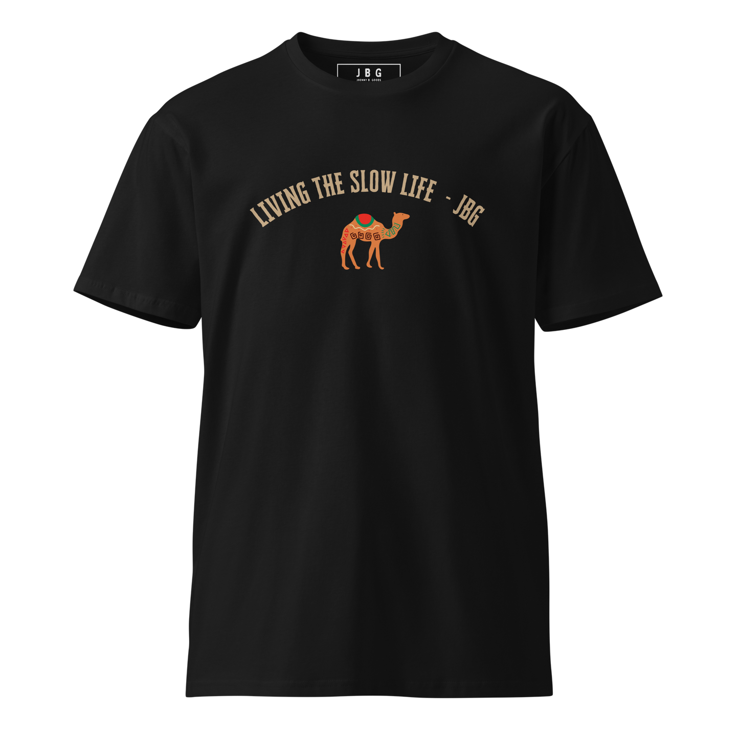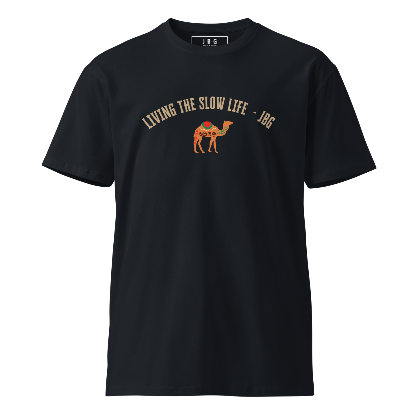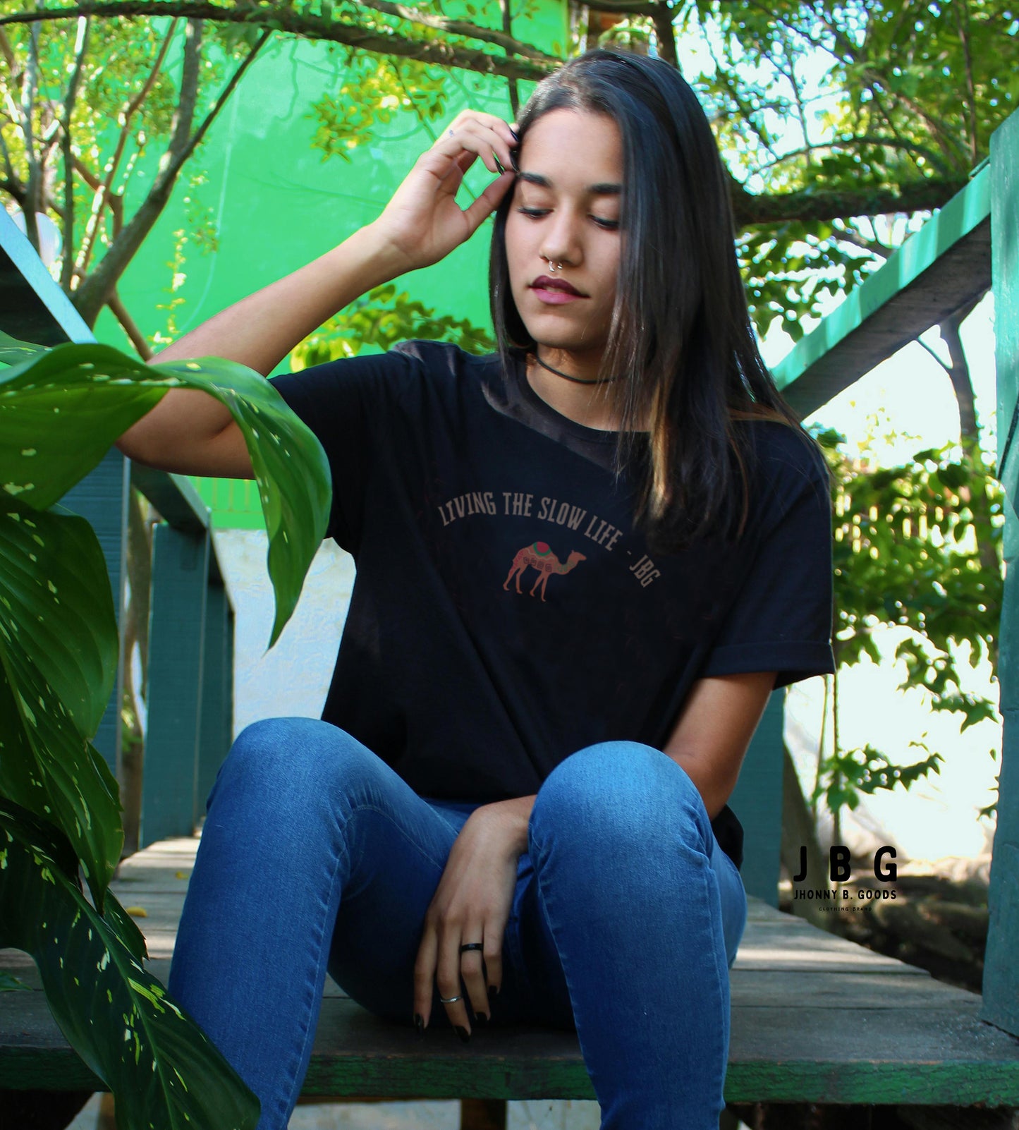 Channel the pace of the wild with our Women's Living The Slow Life premium tee, part of the Women's Nature & Outdoor collection. Featuring an embroiderd JBG camel, this shirt is made for those who walk or run their own path and set the pace. Crafted from ultra-soft, 100% combed cotton, it offers a regular fit and classic crew neck for lasting comfort and style. Stand out, stay wild, and let the world know you’re unapologetically you
