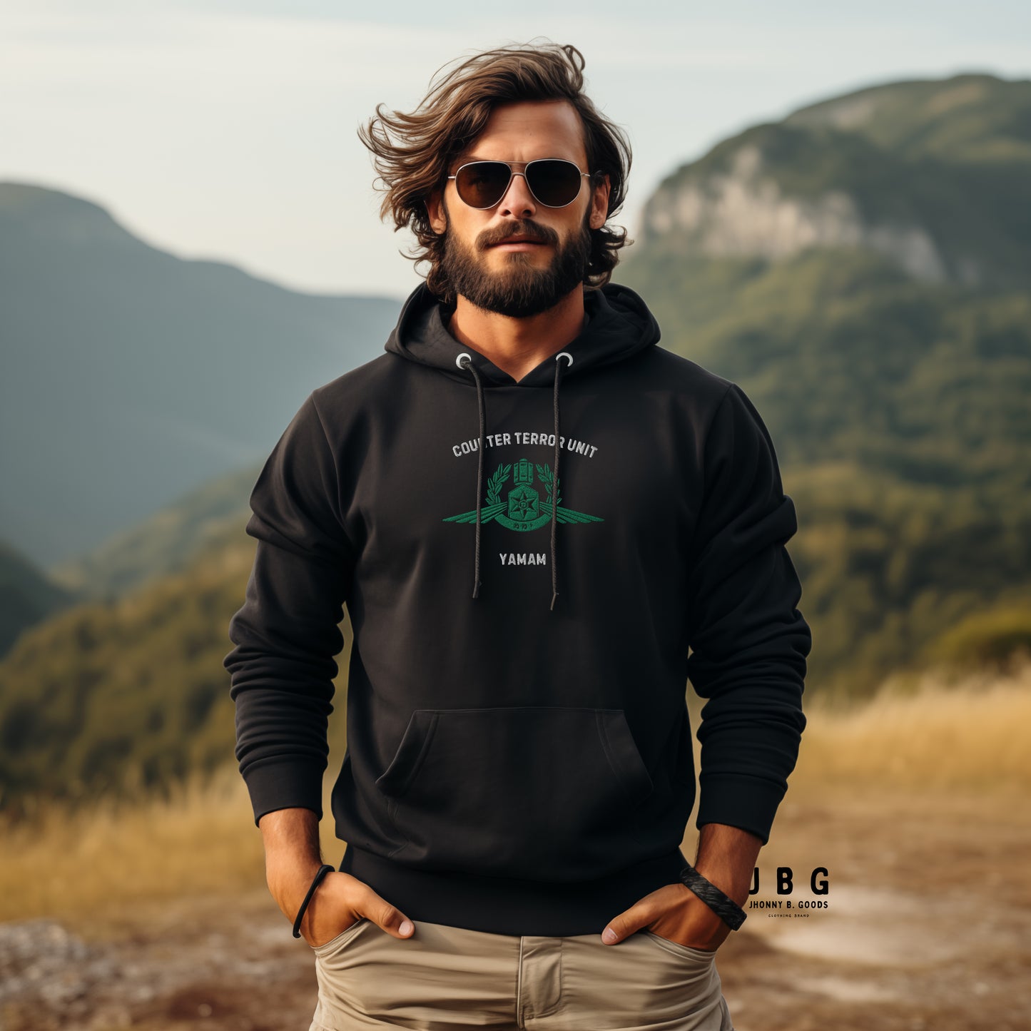 The Yamam is Israel’s premier counter-terrorism unit, specializing in high-stakes hostage rescues, urban warfare, and tactical operations. Renowned for their precision, speed, and effectiveness, Yamam operatives are among the world’s most skilled counter-terror forces. This hoodie is a stylish tribute to their bravery and dedication, making it a standout addition to your wardrobe.