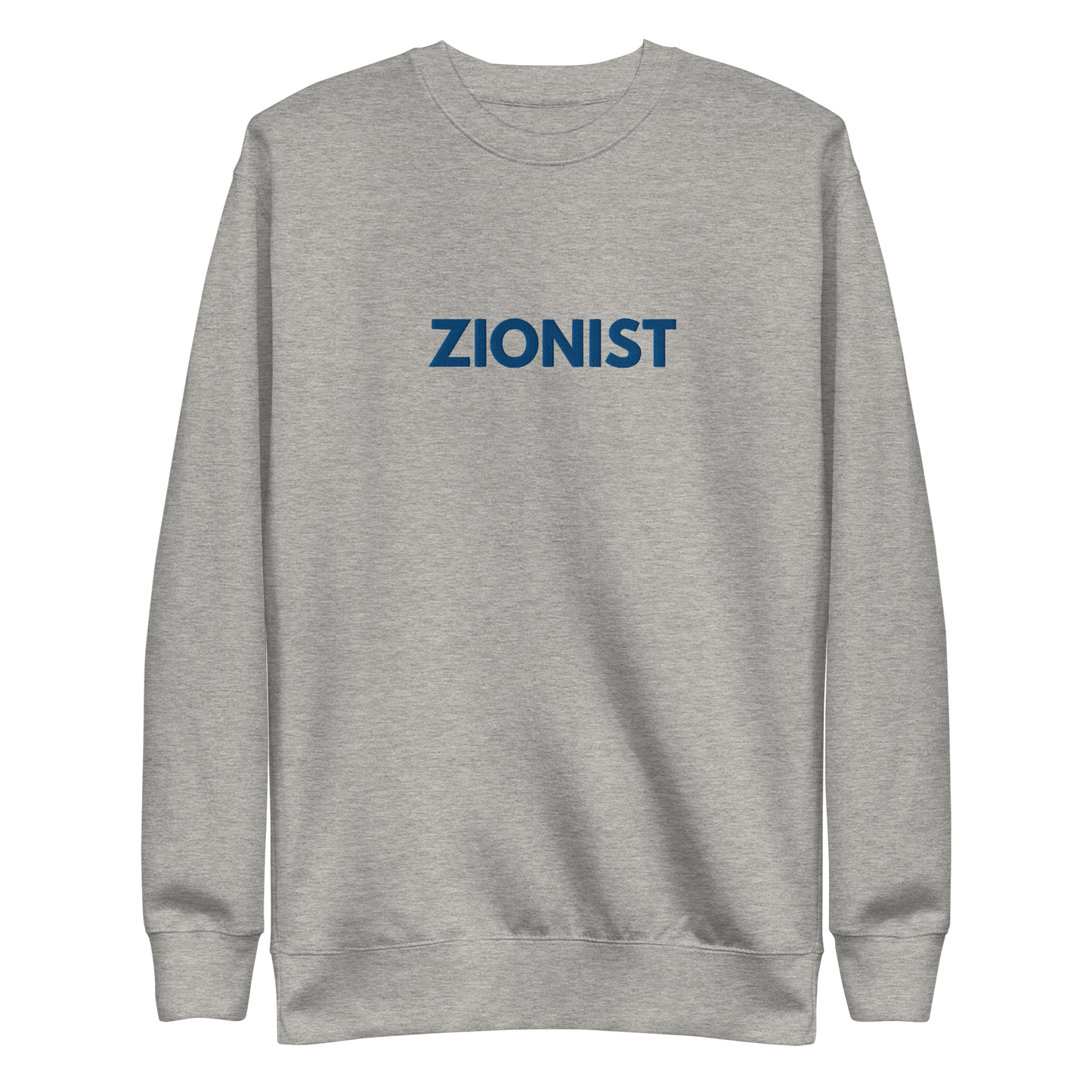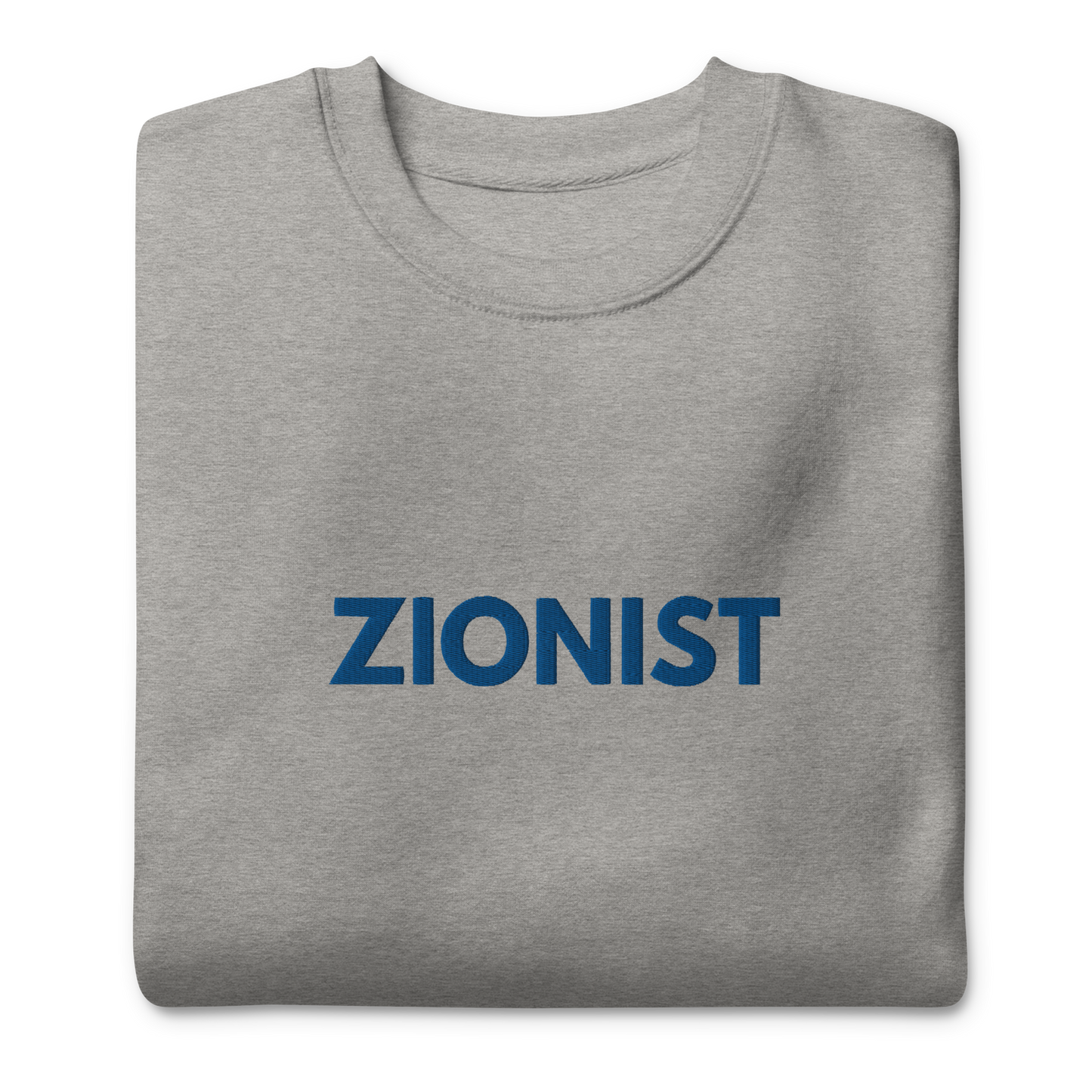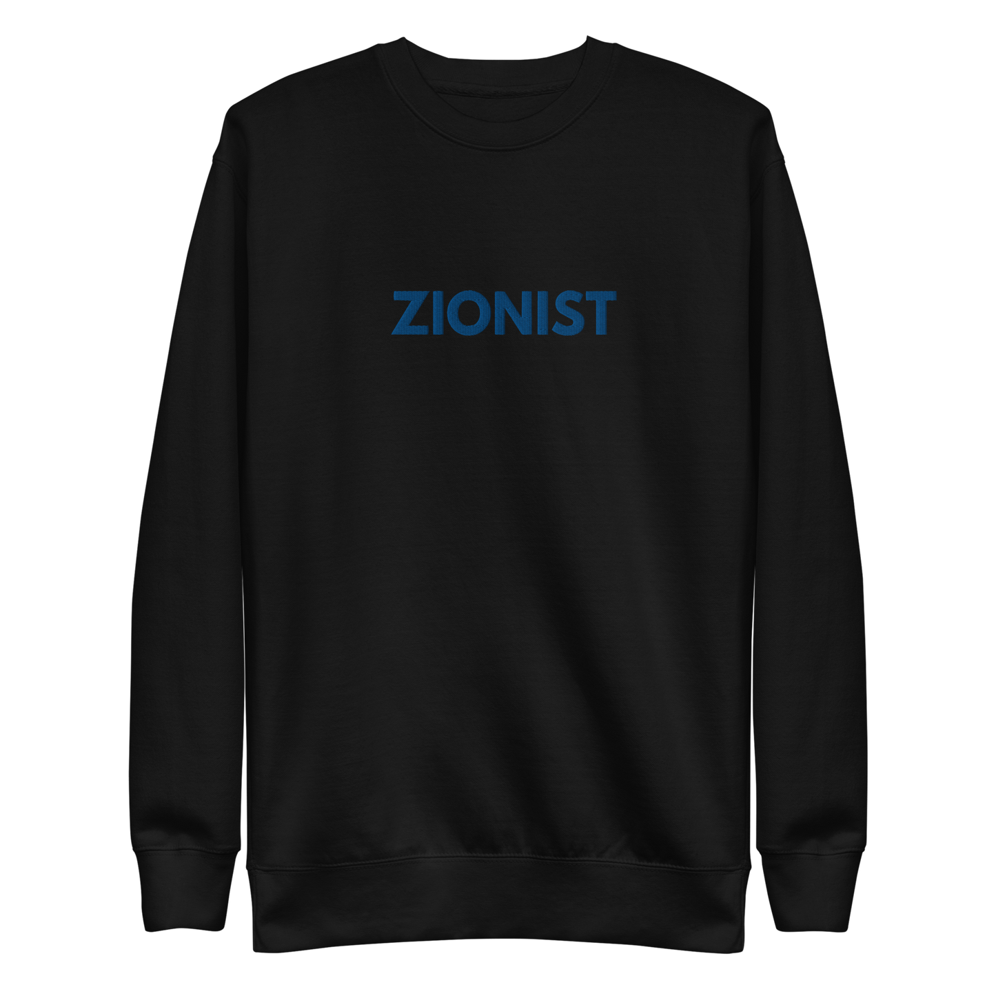 Make a bold statement with this classic sweatshirt, featuring a timeless design complete with a ribbed crew neck, long sleeve cuffs, and a flat hem. Embroidered on the center chest, the word Zionist stands as a powerful declaration of pride and solidarity.