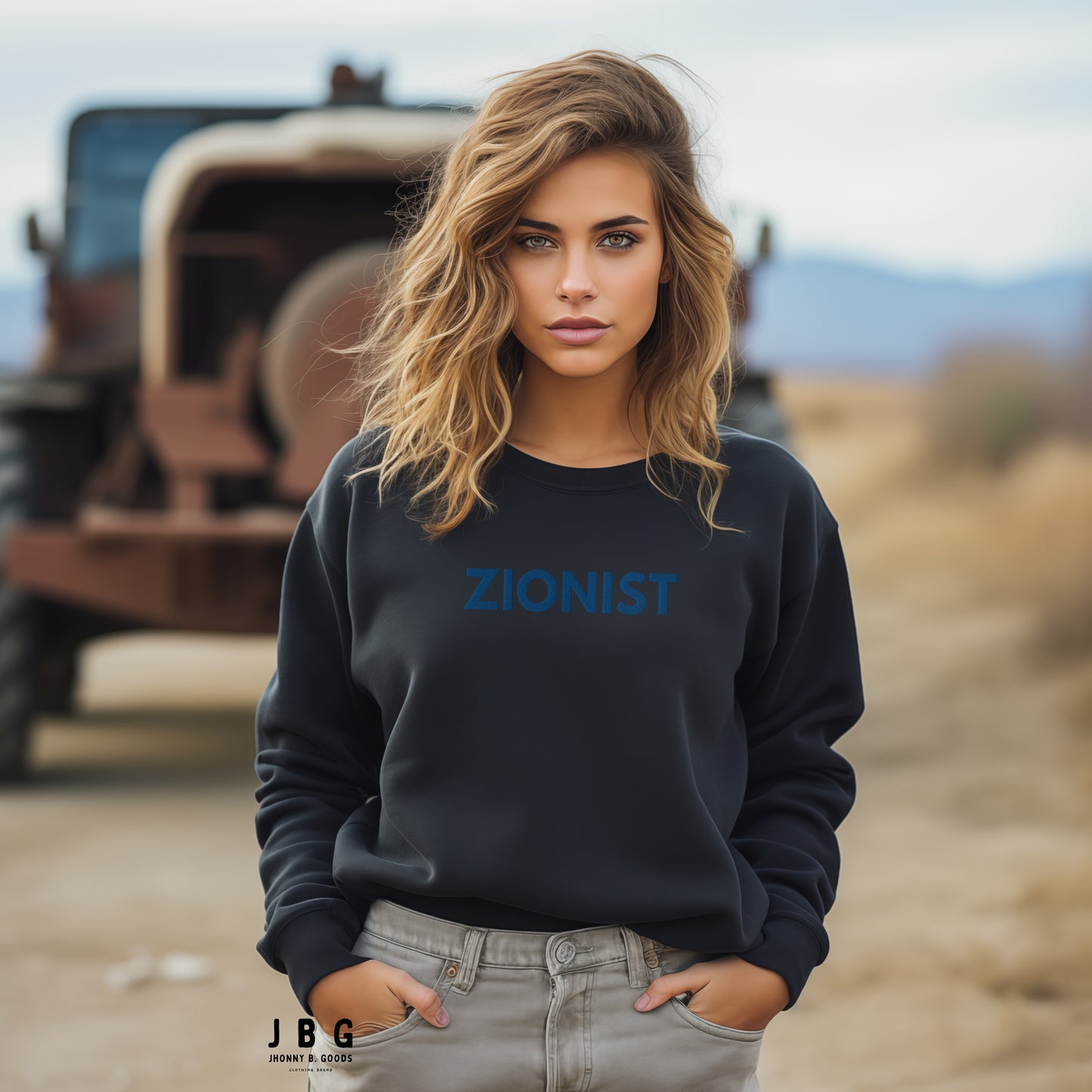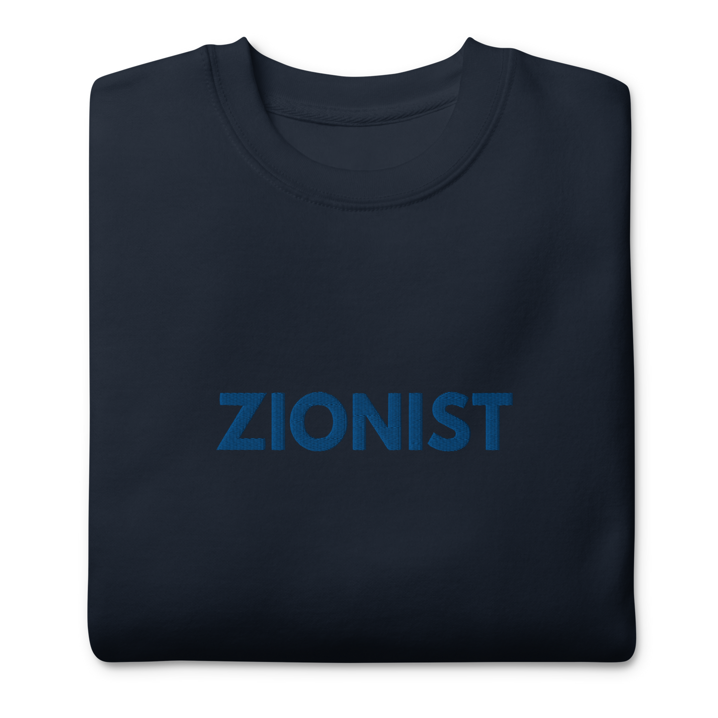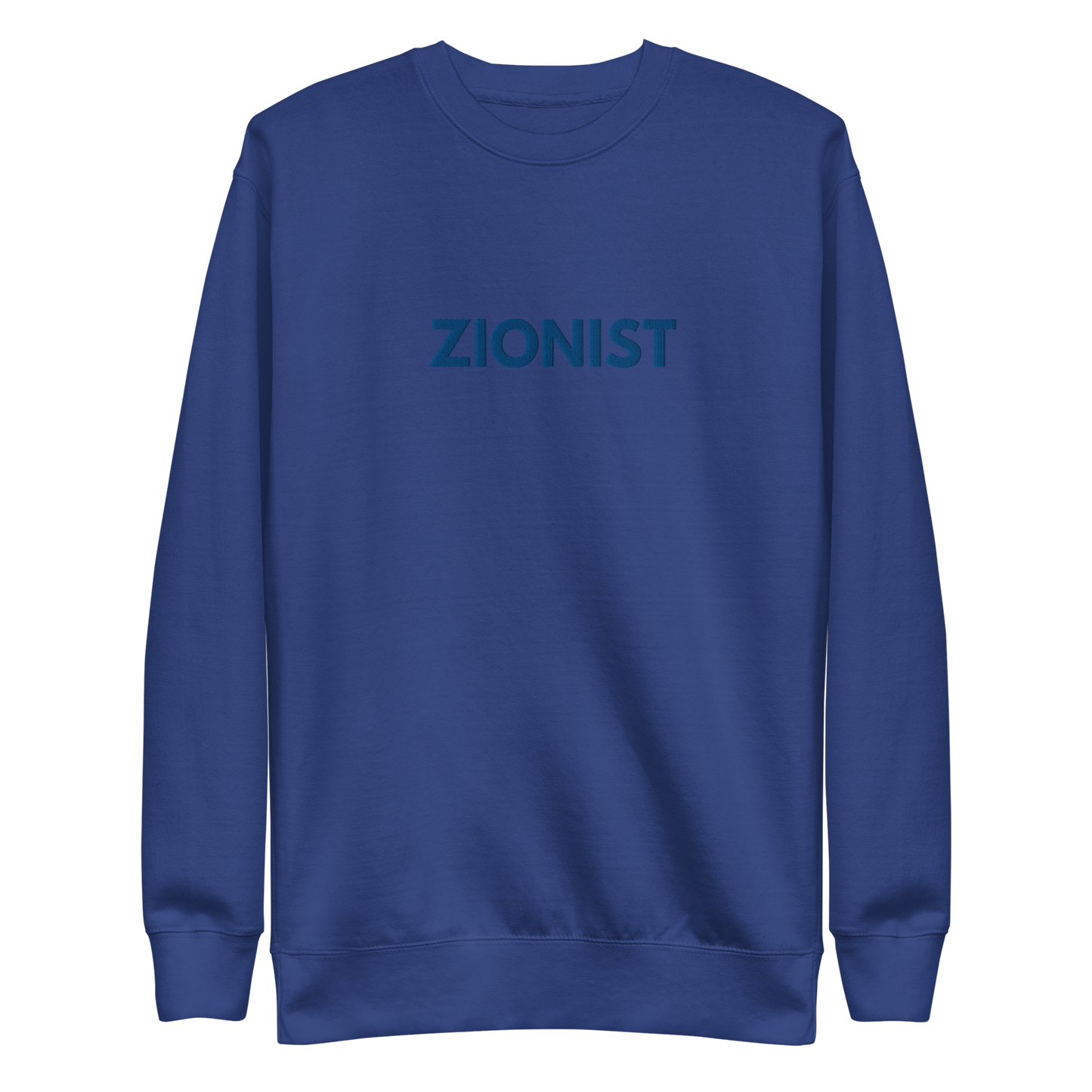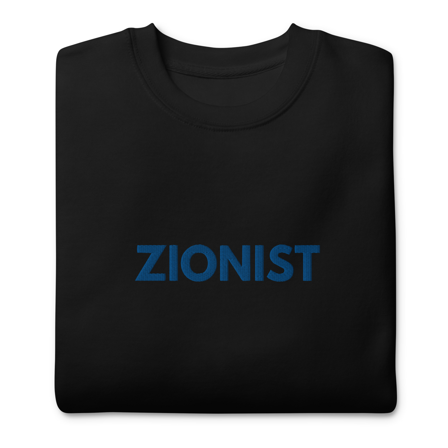Make a bold statement with this classic sweatshirt, featuring a timeless design complete with a ribbed crew neck, long sleeve cuffs, and a flat hem. Embroidered on the center chest, the word Zionist stands as a powerful declaration of pride and solidarity.